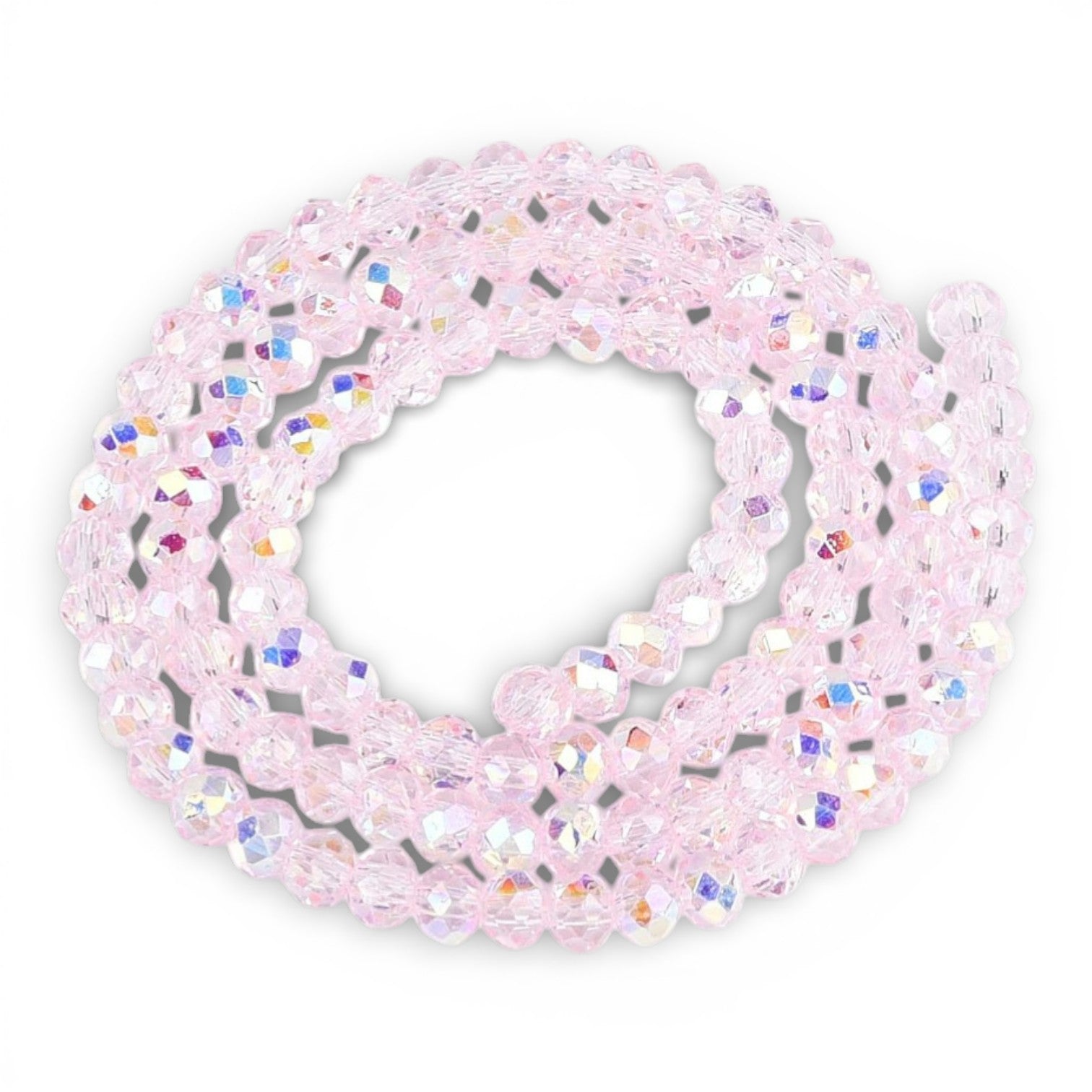 x1 Fil de Perles de Verre AB Rose – Rondelles Facettées – 3,5 à 4 mm