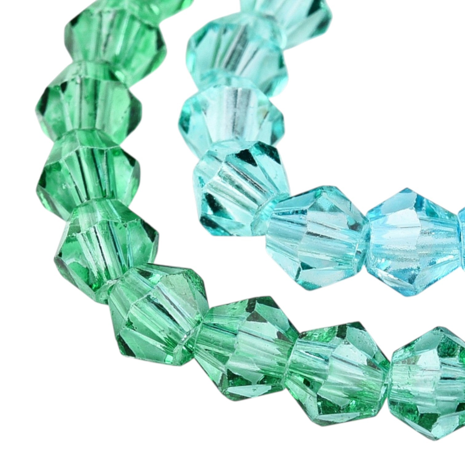 ✨ Fil de Perles de verre peintes au four – Biconiques facettées dégradées 6 mm – Vert et Bleu
