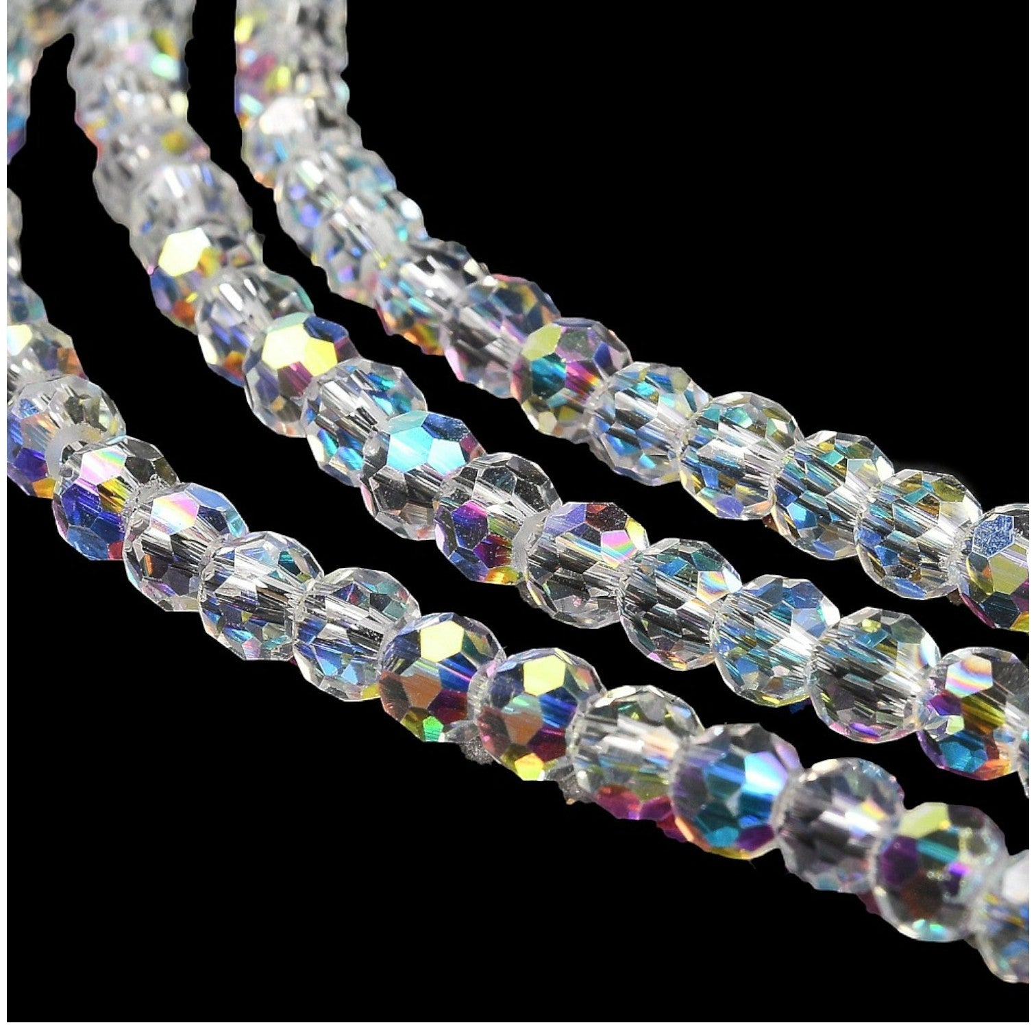 ✨ Fil de Perles de Verre Électroplaquées AB – Rondes Facettées 4 mm