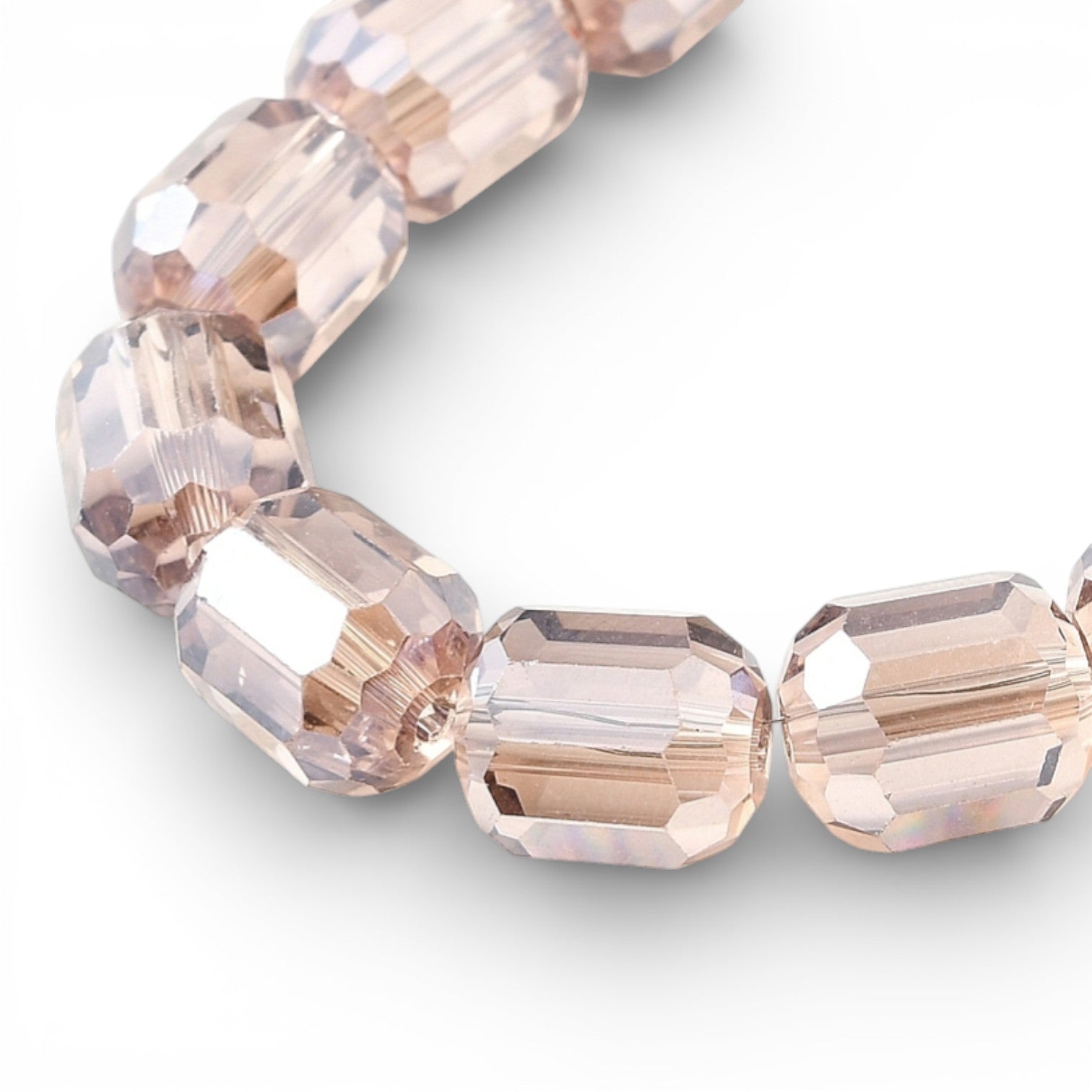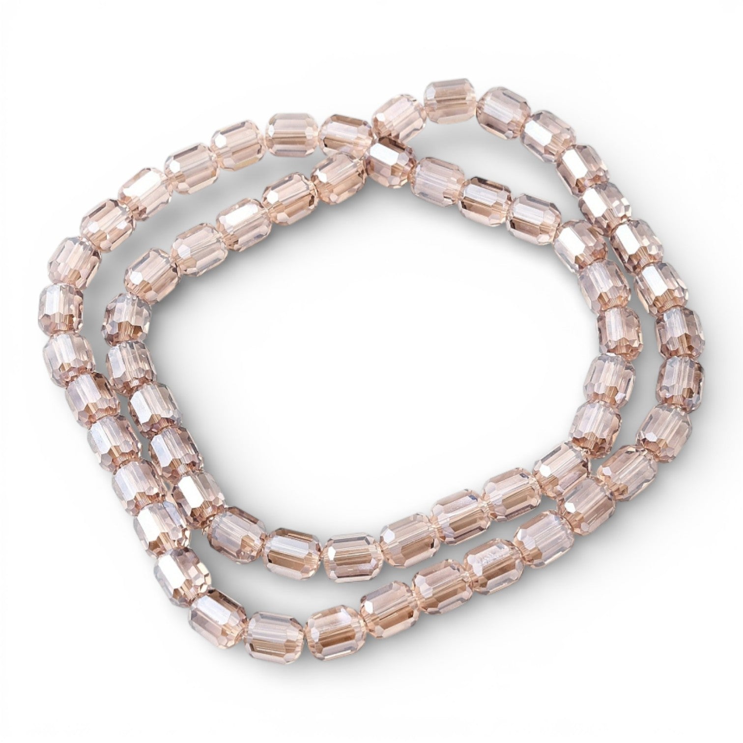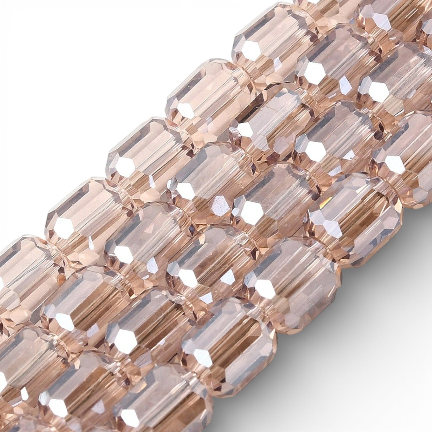 Des perles cylindriques facettées au fini lumineux pour des créations modernes et élégantes.