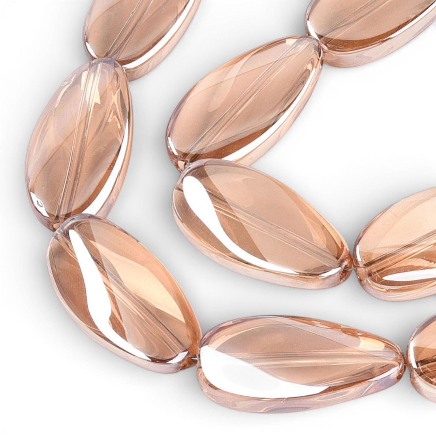 ✨ Fil de Perles de verre transparentes électroplaquées – Ovales torsadées – Champagne