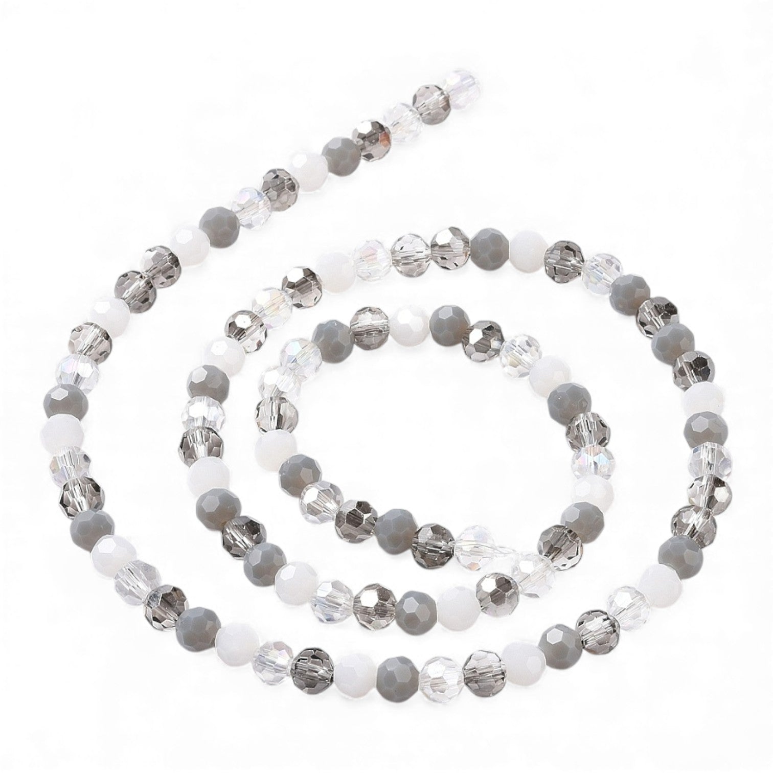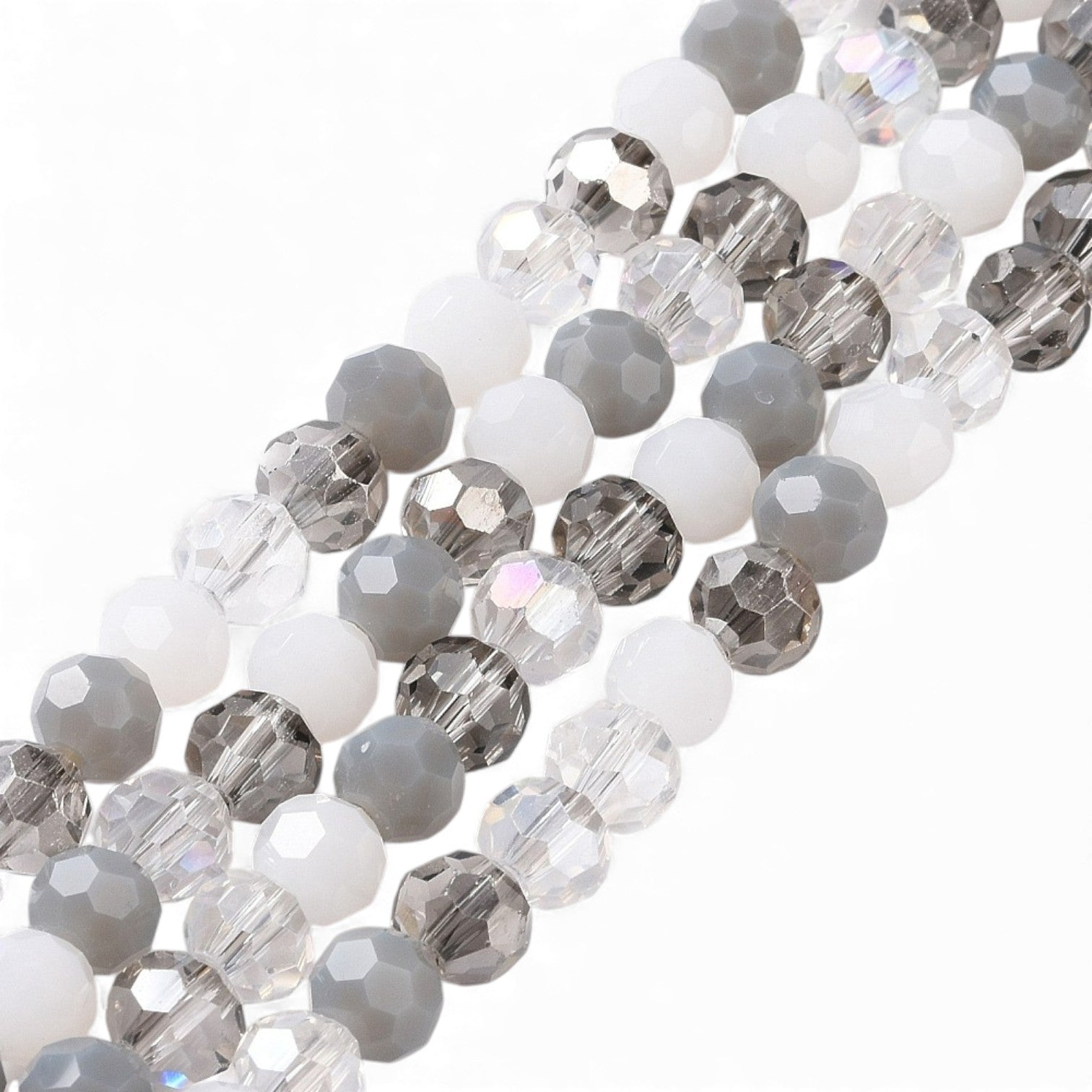 ✨ Fil de Perles de Verre Facettées – Rondes 5,5 à 6,5 mm – Gris/blanc