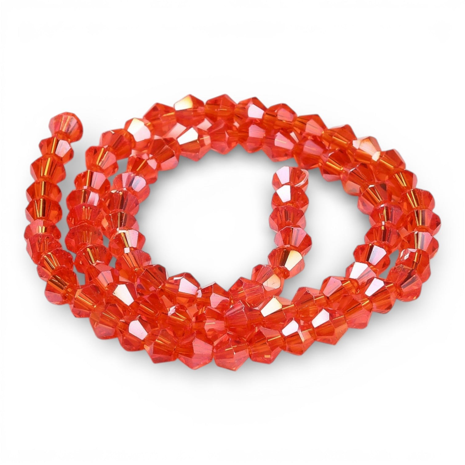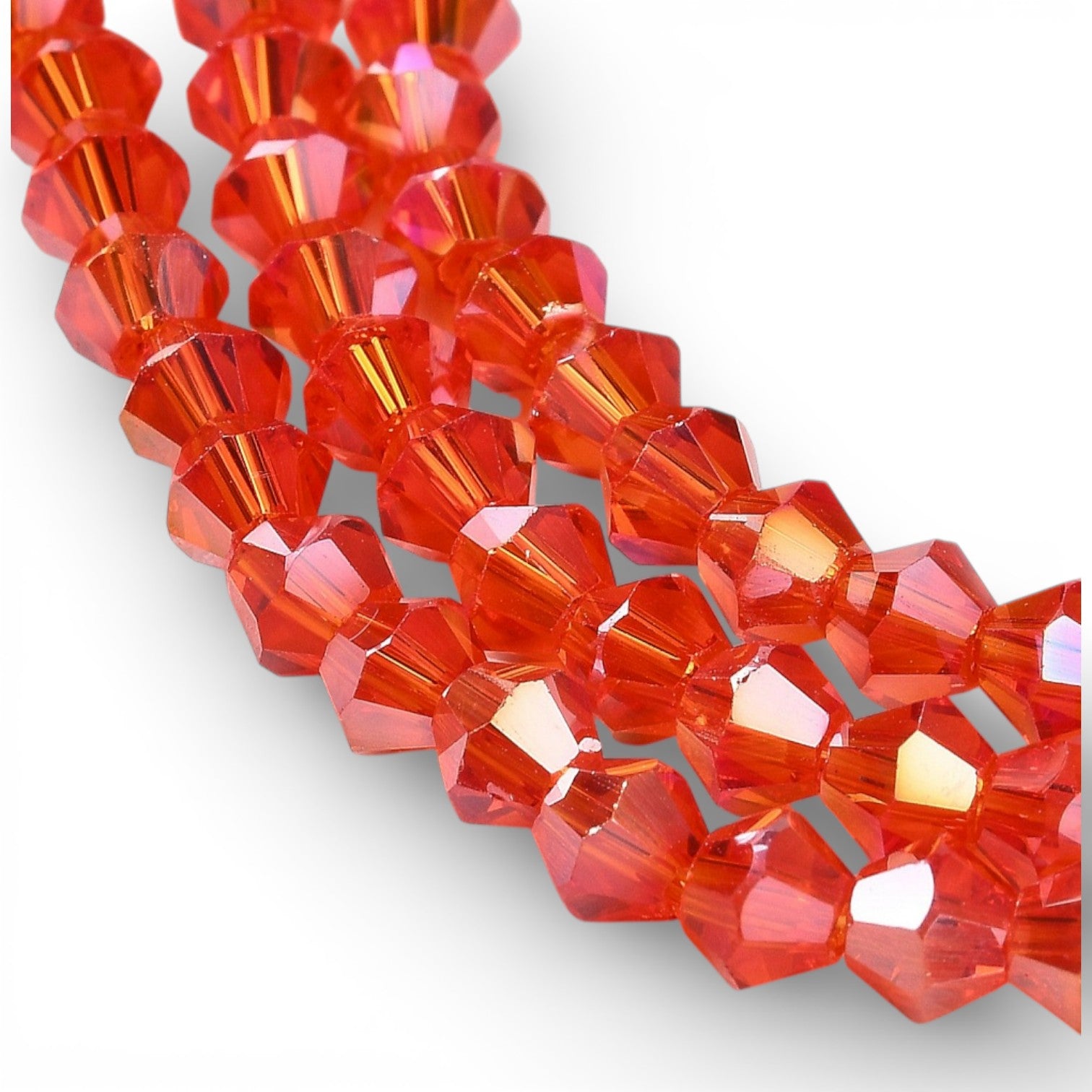 ✨ Fil de Perles de Verre Transparentes Facettées – Biconiques 4 mm – Rouge AB