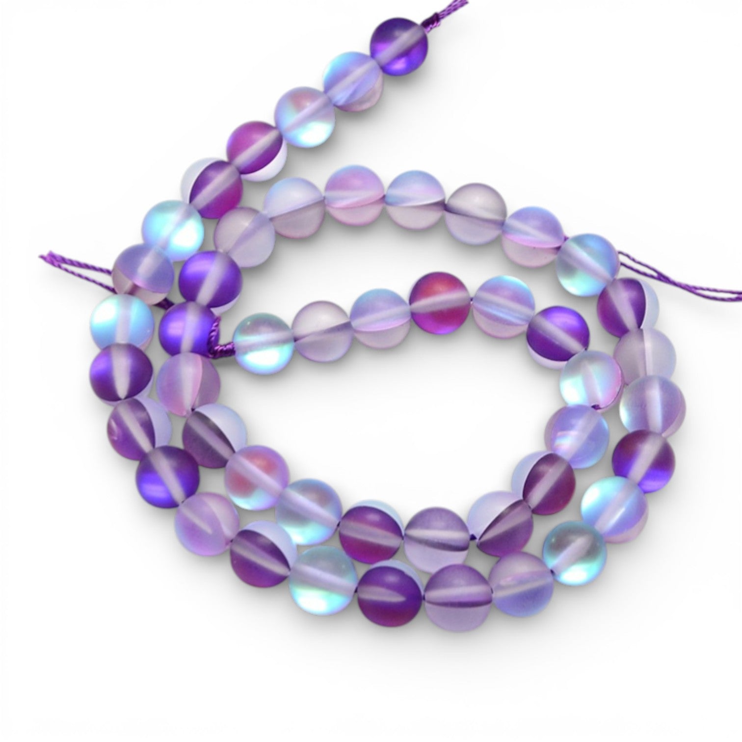 ✨ Fil de Perles Holographiques Givrées – Rondes 8 mm – Violet