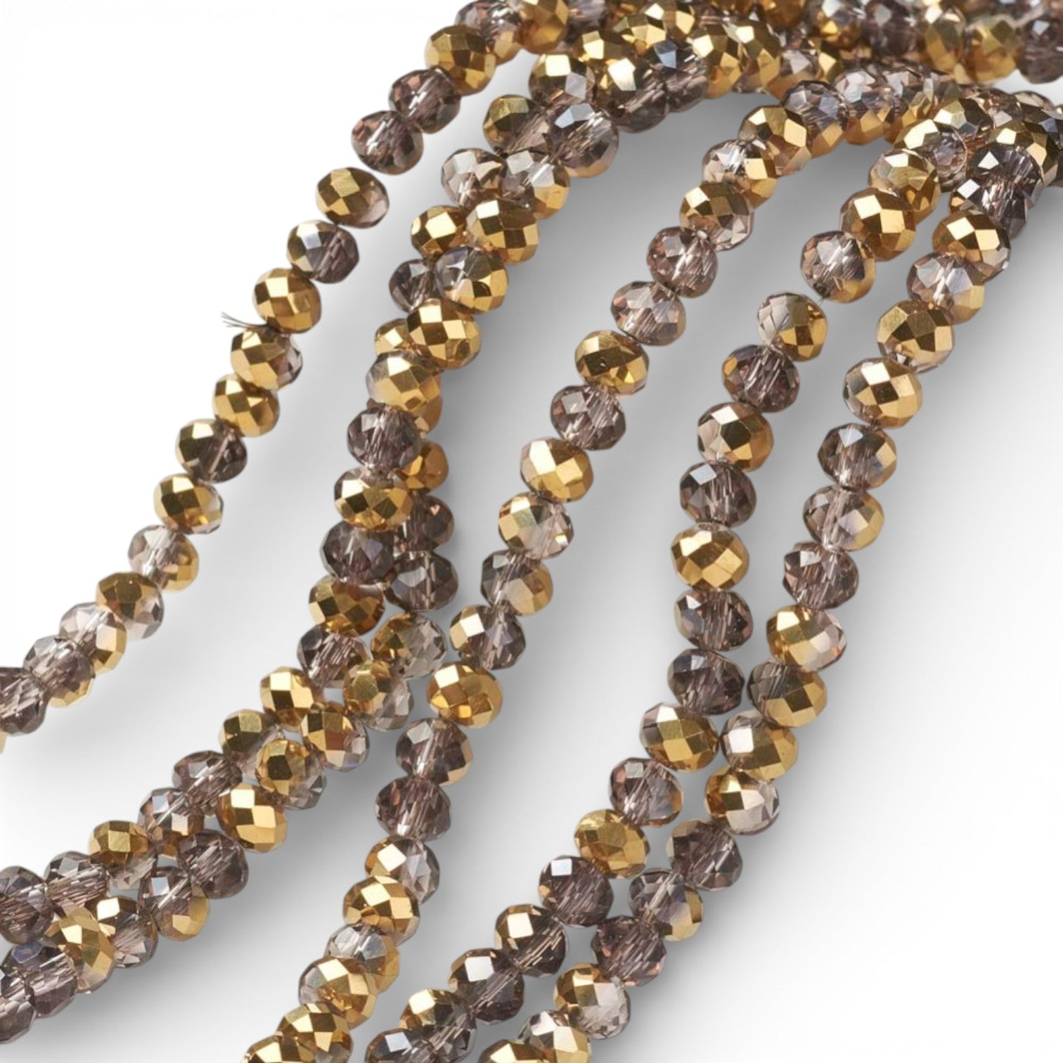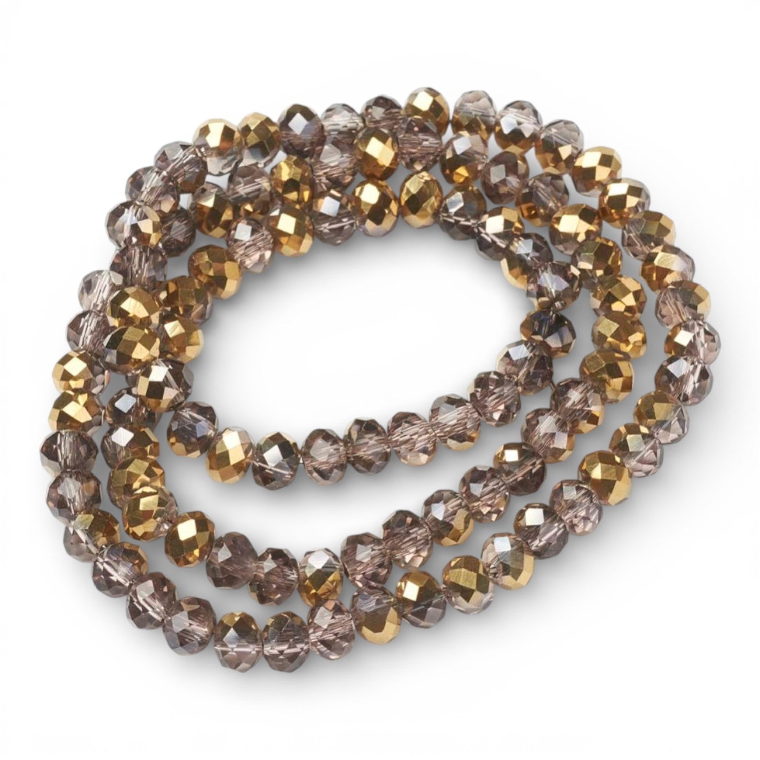 x1 Fil de Perles rondelles facettées en verre électroplaqué – Violine et Doré– 6 x 5 mm