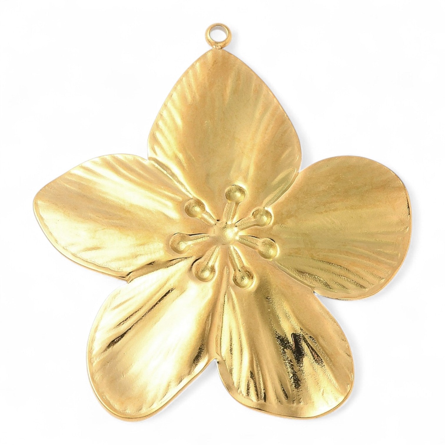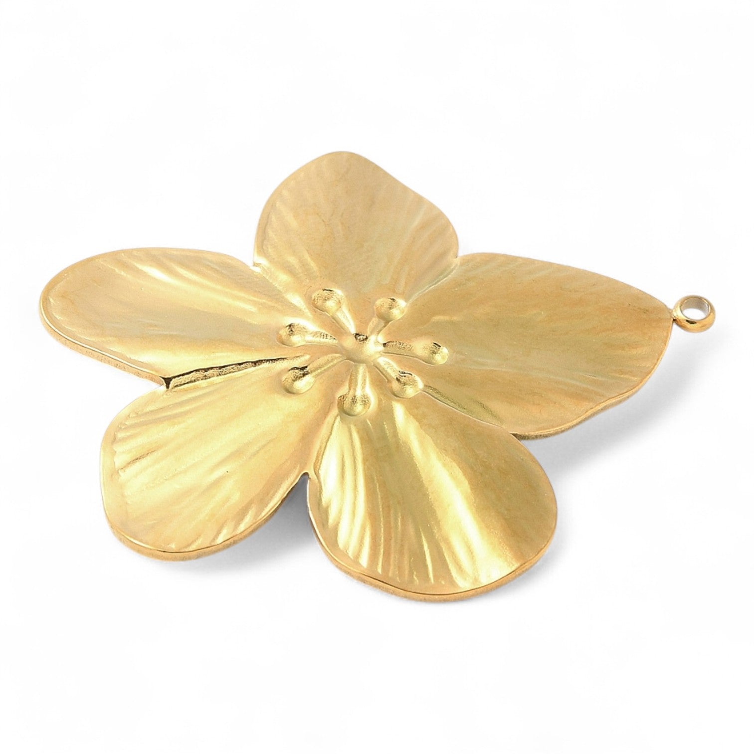 x1 Grand Pendentif Fleur en acier inox 304 – Plaqué or 18K IP – 44 mm
