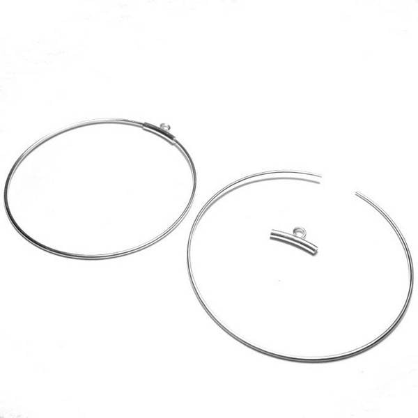 1 paire de créoles en Argent 925 – 40mm | Fil 0,7mm + Tube Courbé avec Anneau