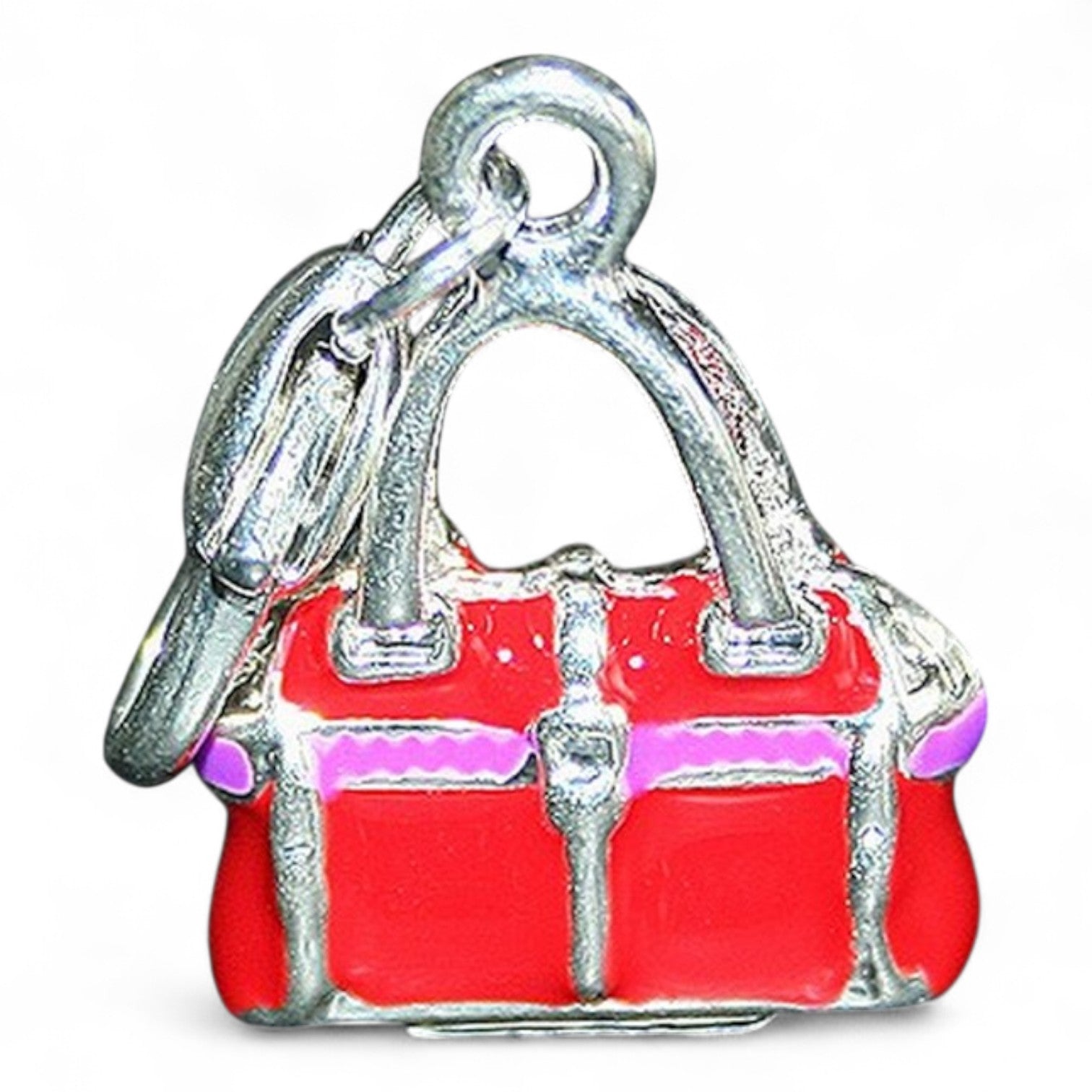 Charm Sac à Main Rouge 3D – Métal Argenté et Émail