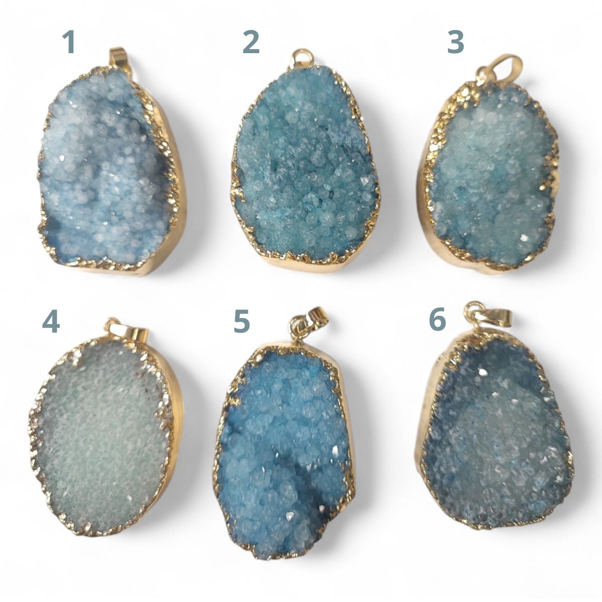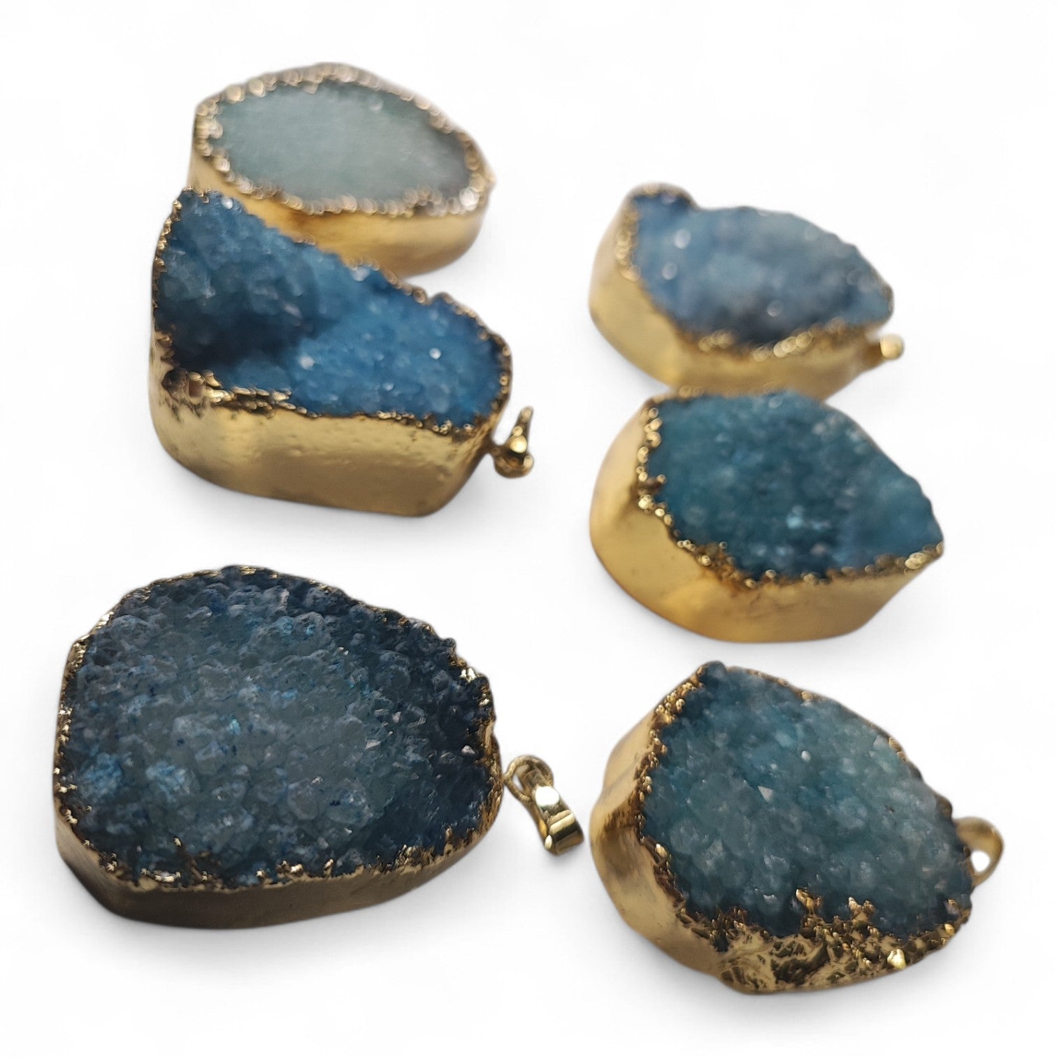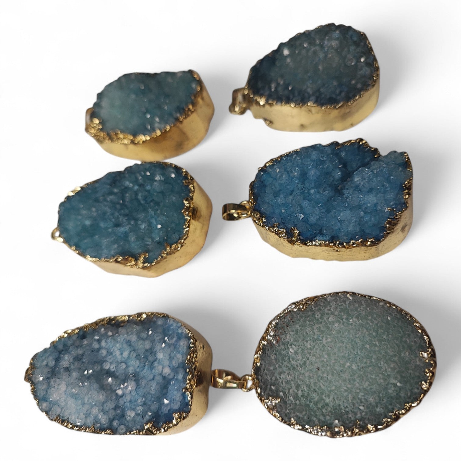 💠 Pendentifs Druzy en Agate Naturelle – Galvanoplastie Dorée – Aigue-Marine