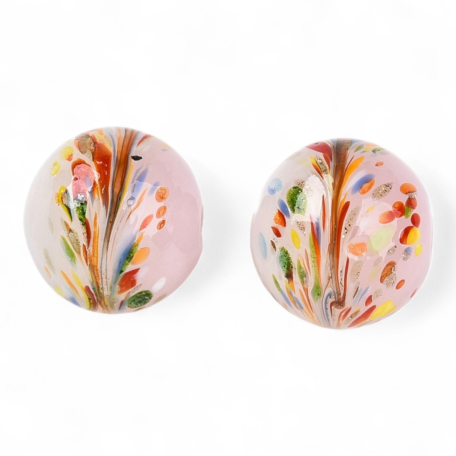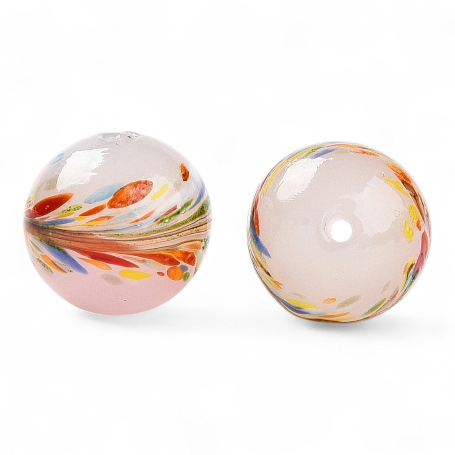 ✨ Perles artisanales en verre soufflé – Rondes à motif fleur – Bicolores – 12 à 12,5 mm (x 1)
