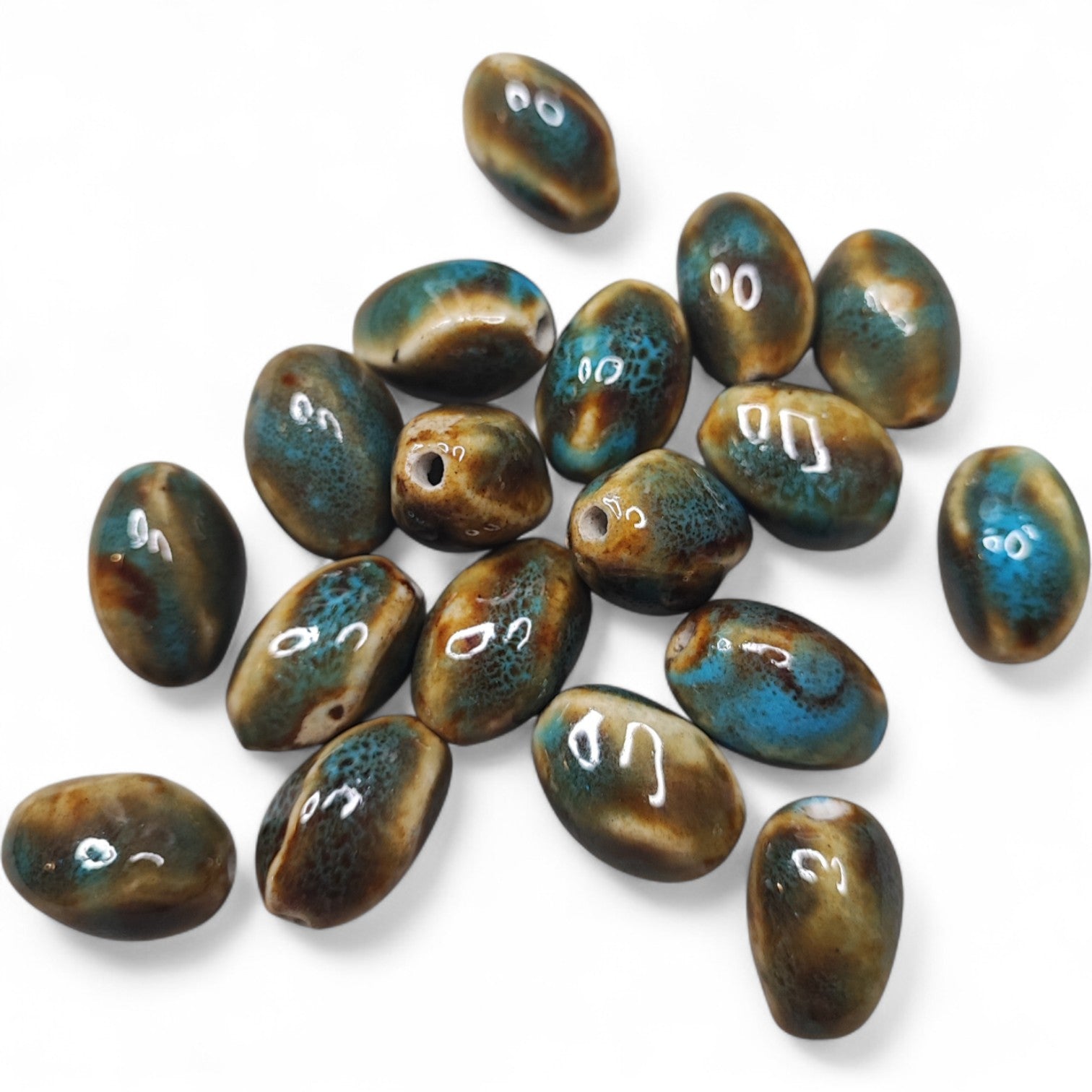 🪨 Perle Céramique – 20 x 14 mm – Bleu et Marron