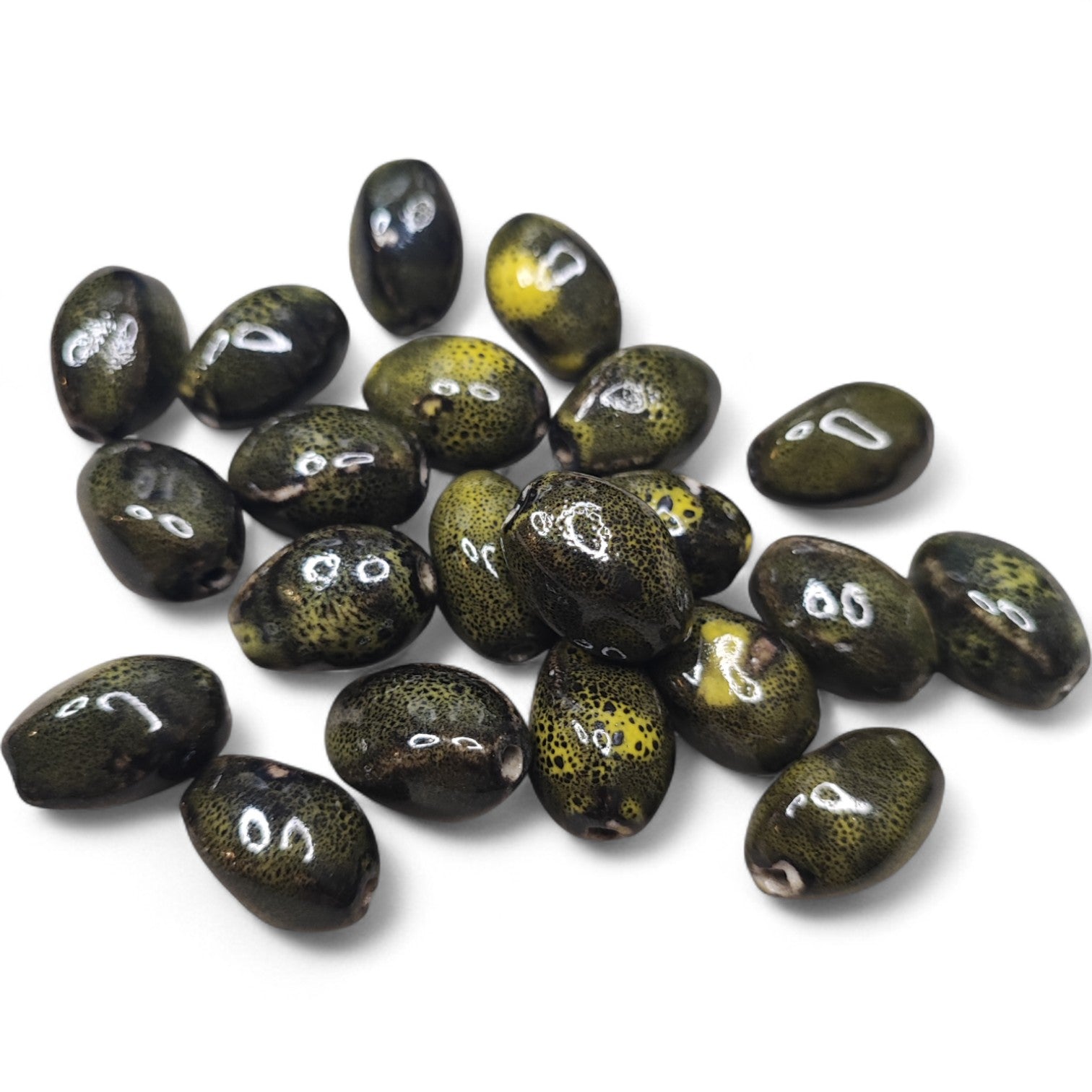 🪨 Perle Céramique – 20 x 14 mm – Vert et kaki