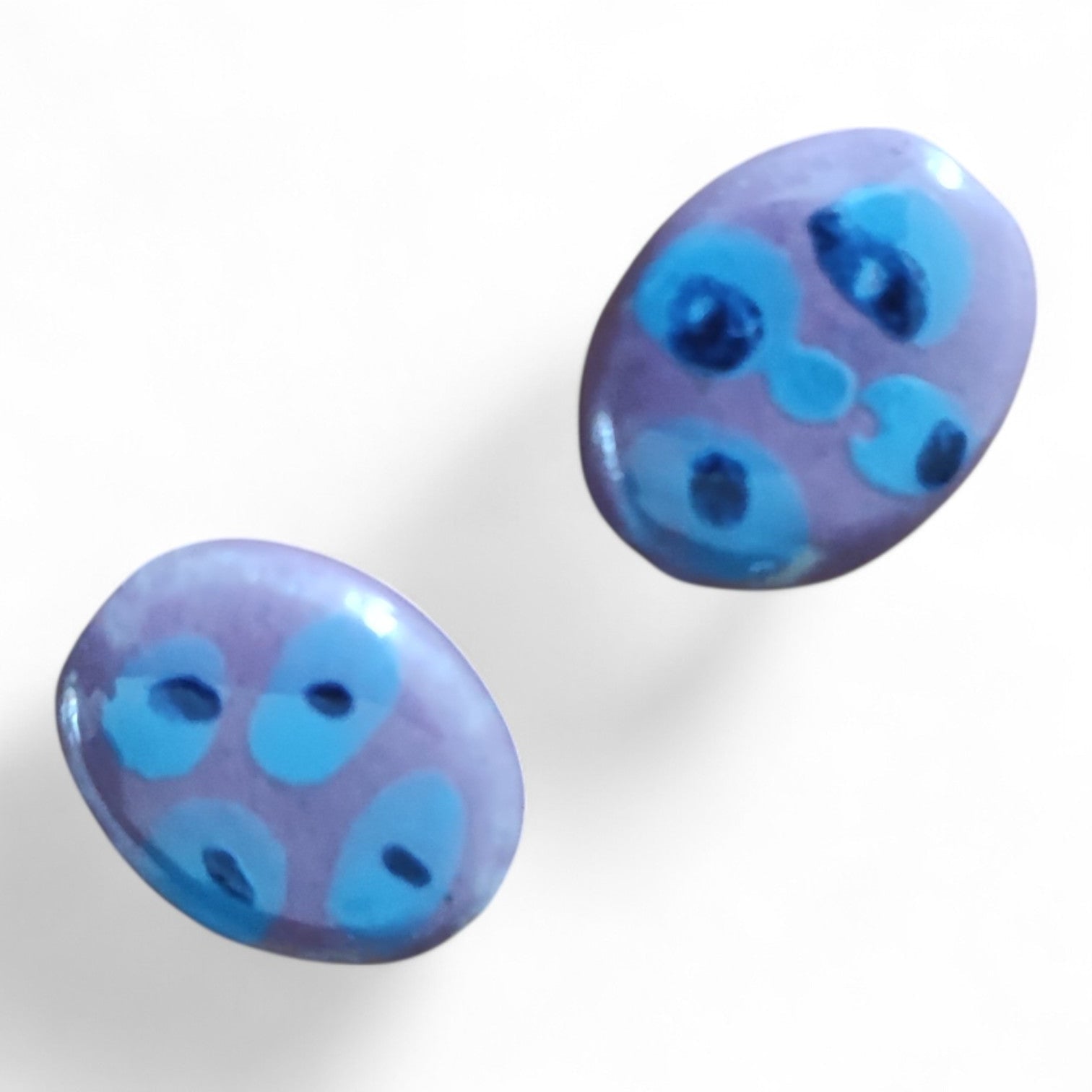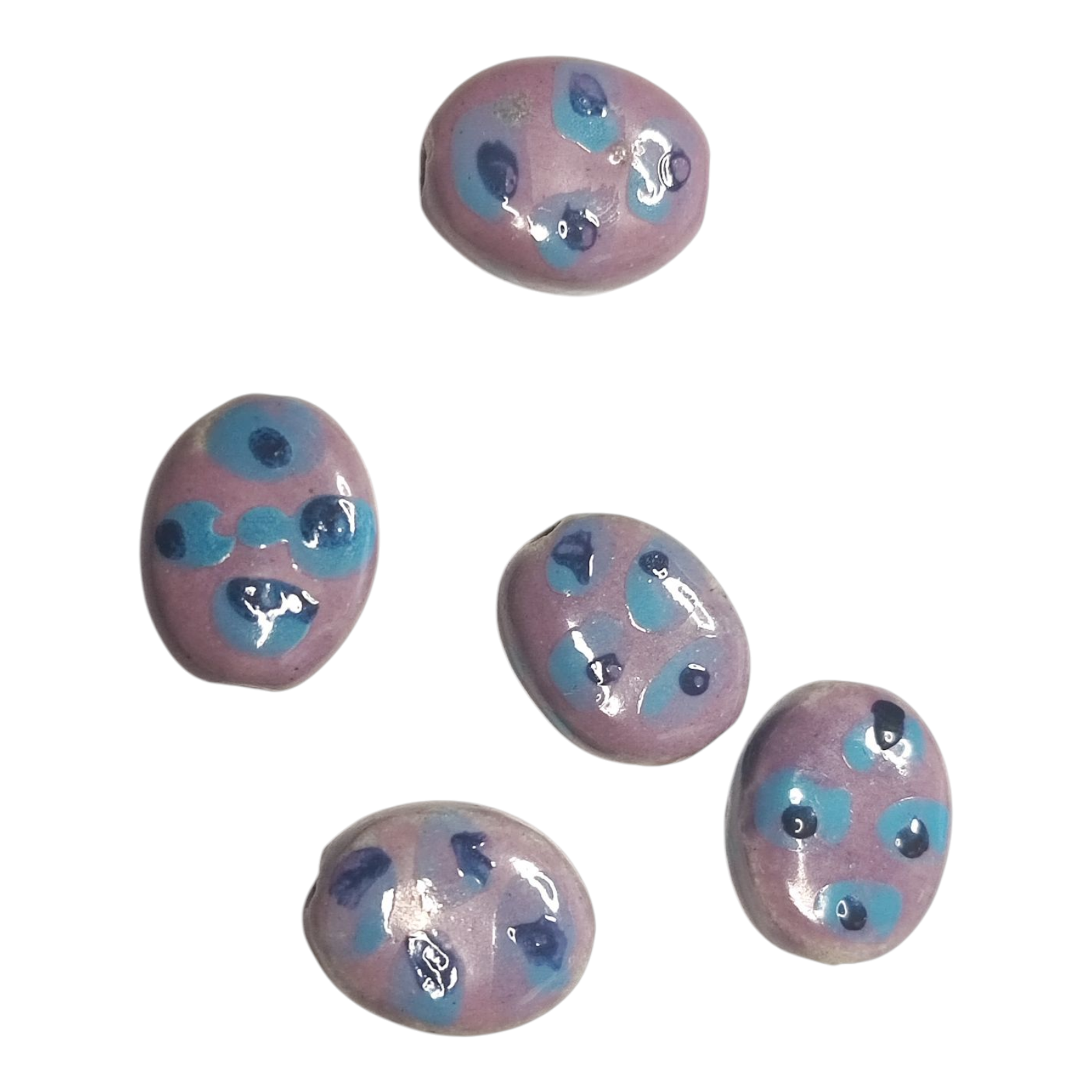 💜 Perle Céramique Ovale Plate – Violet Tacheté Bleu – 24x16 mm