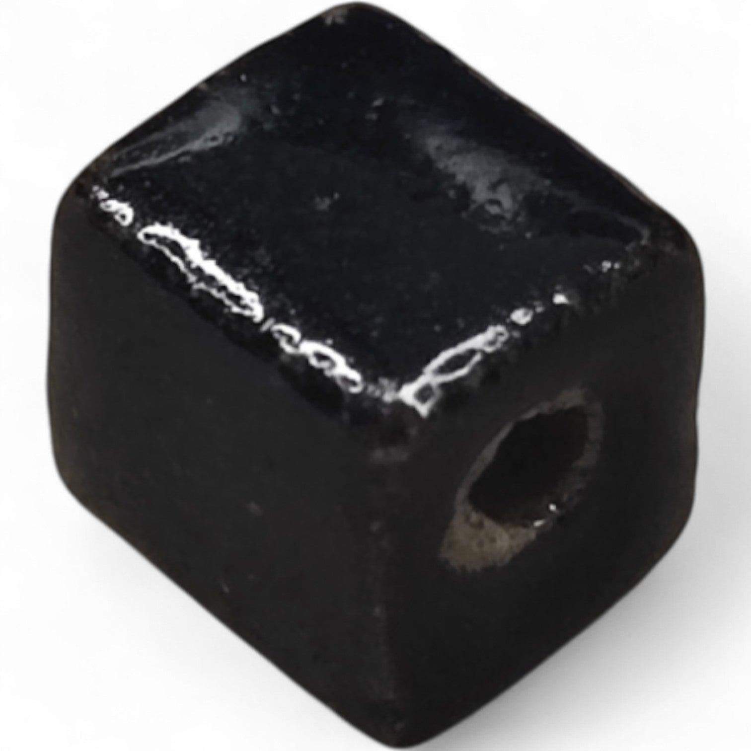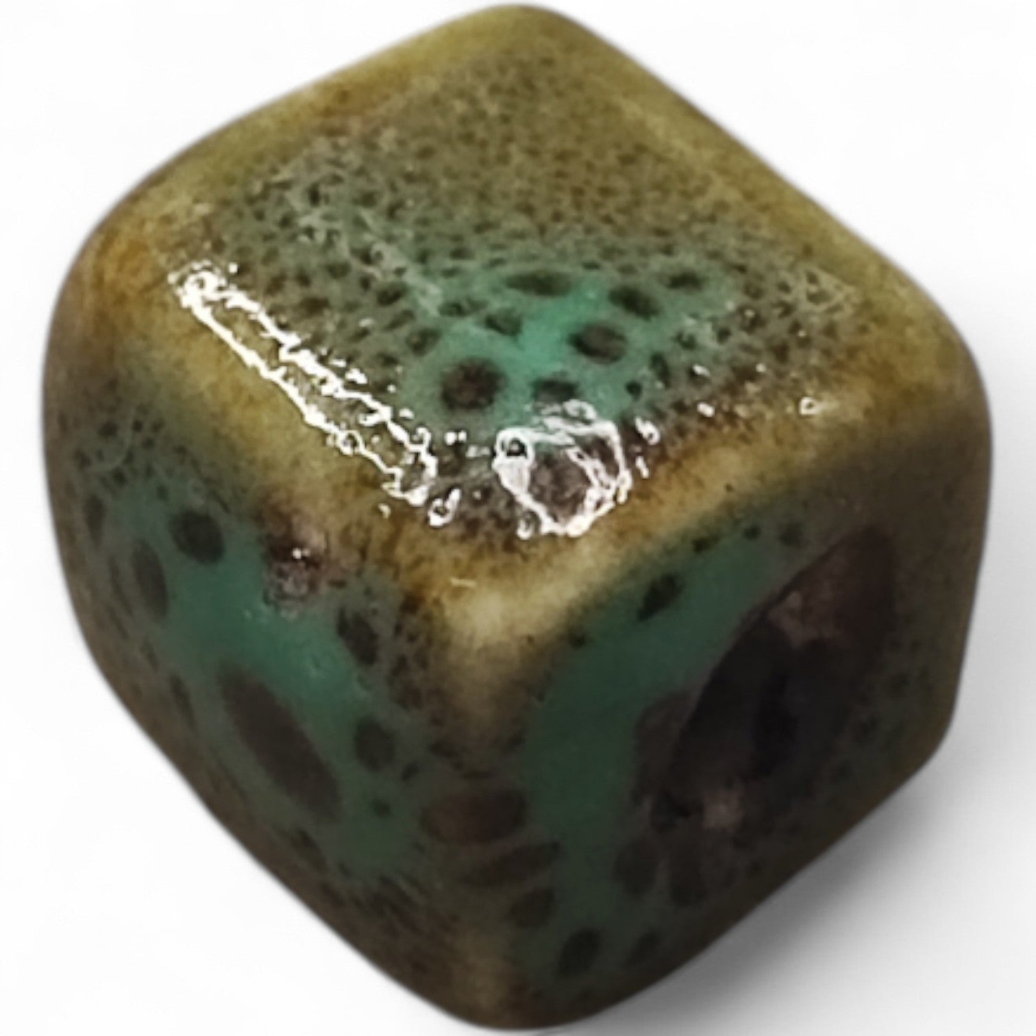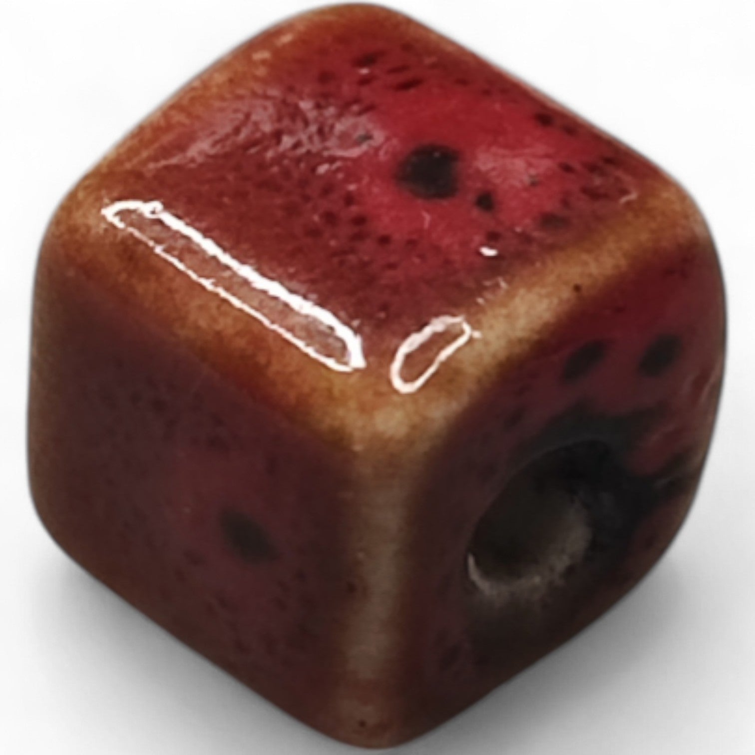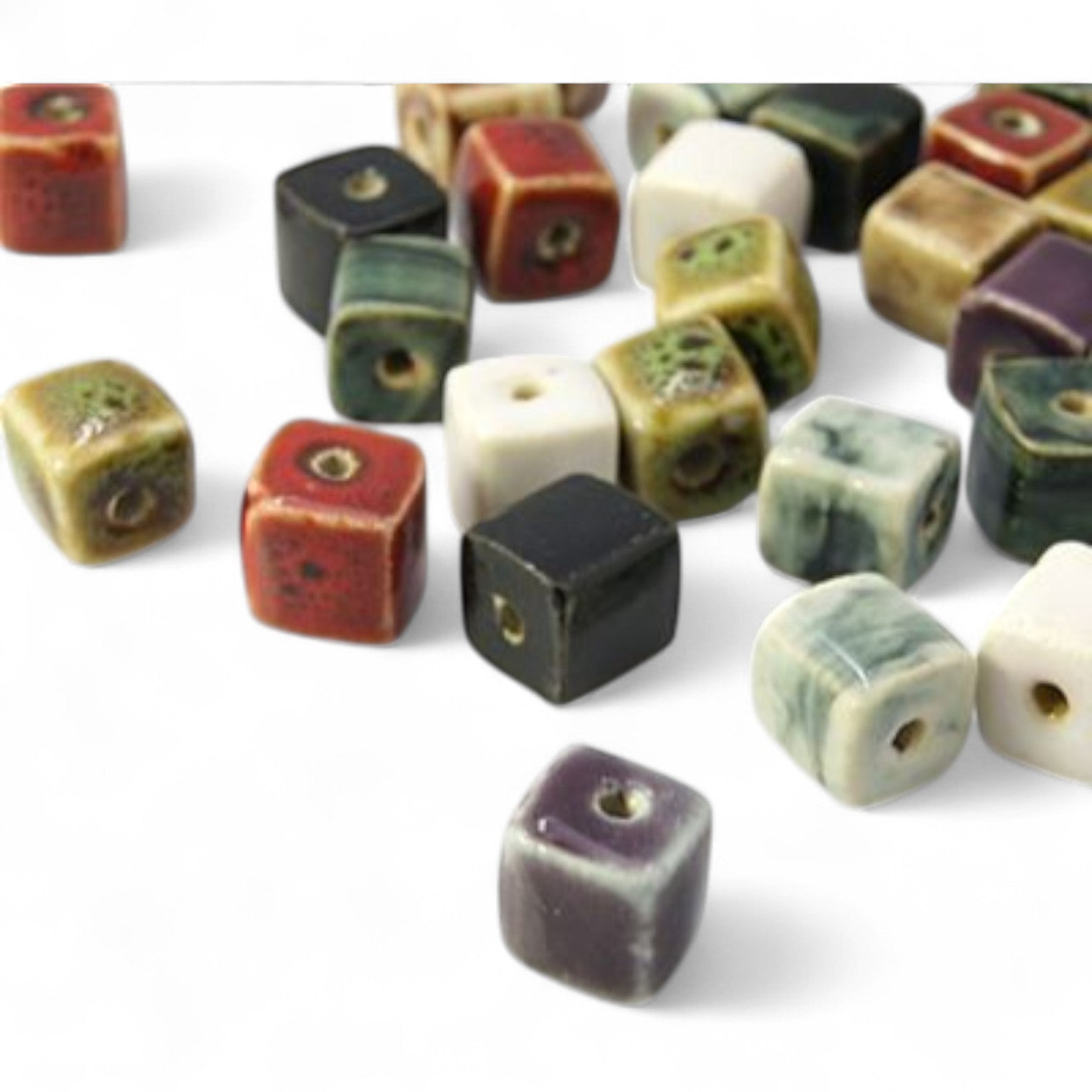 🏺 Perle Cube en Porcelaine Émaillée Antique – 10,5 mm – Fait Main – Couleurs au Choix
