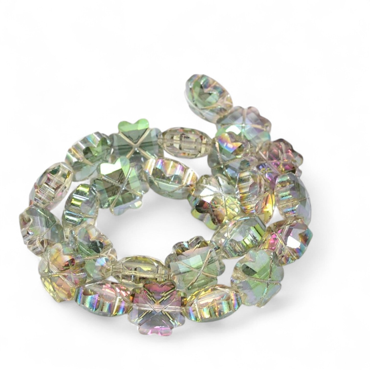 🍀 Perles de Verre à Facettes Galvanisées – Forme Trèfle – 17 mm