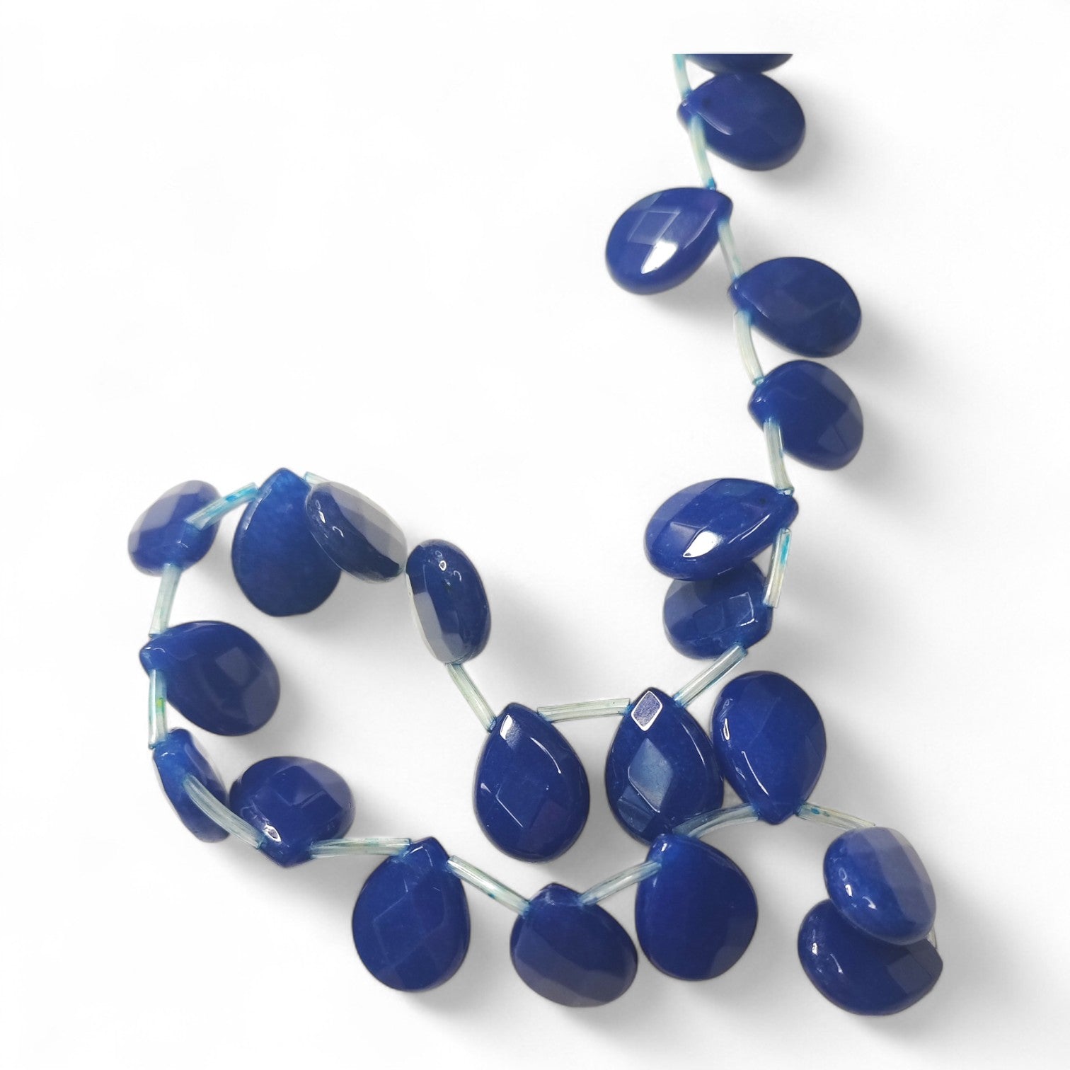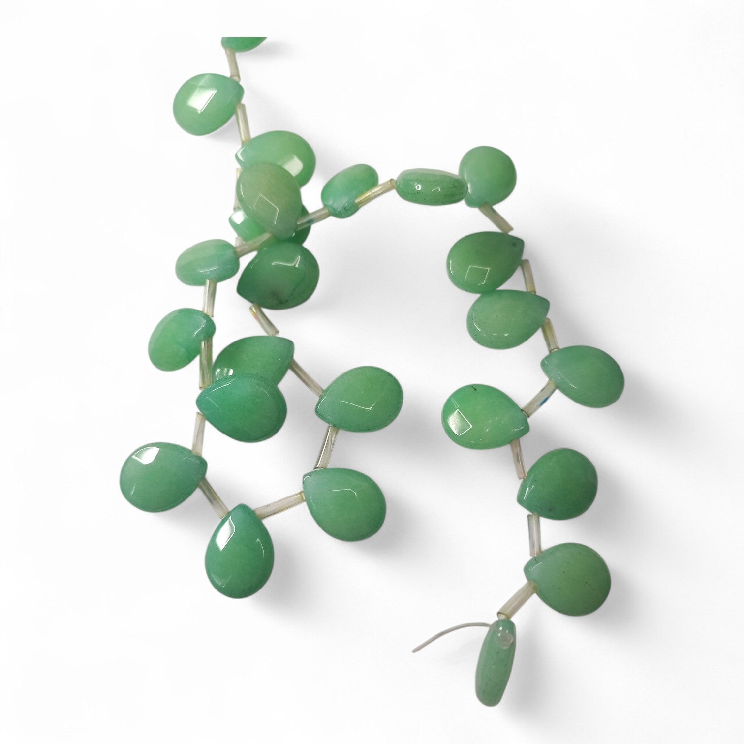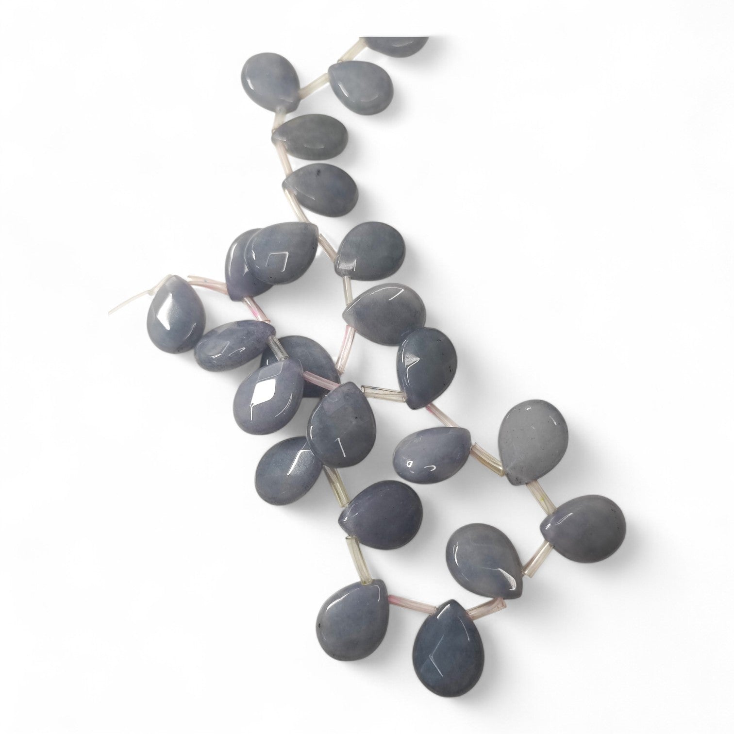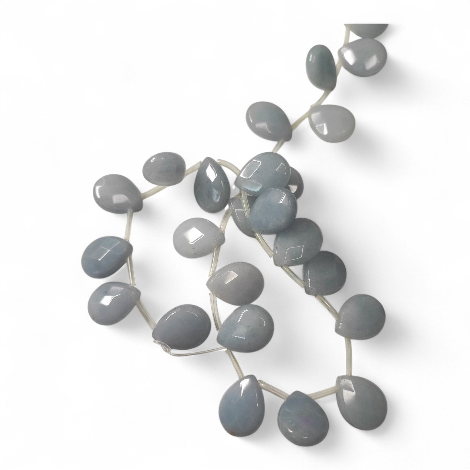 Ces perles en forme de goutte, finement facettées, sont issues de jade blanc teinté. Elles allient éclat raffiné et douceur symbolique, idéales pour créer des bijoux empreints de sens et d'élégance.