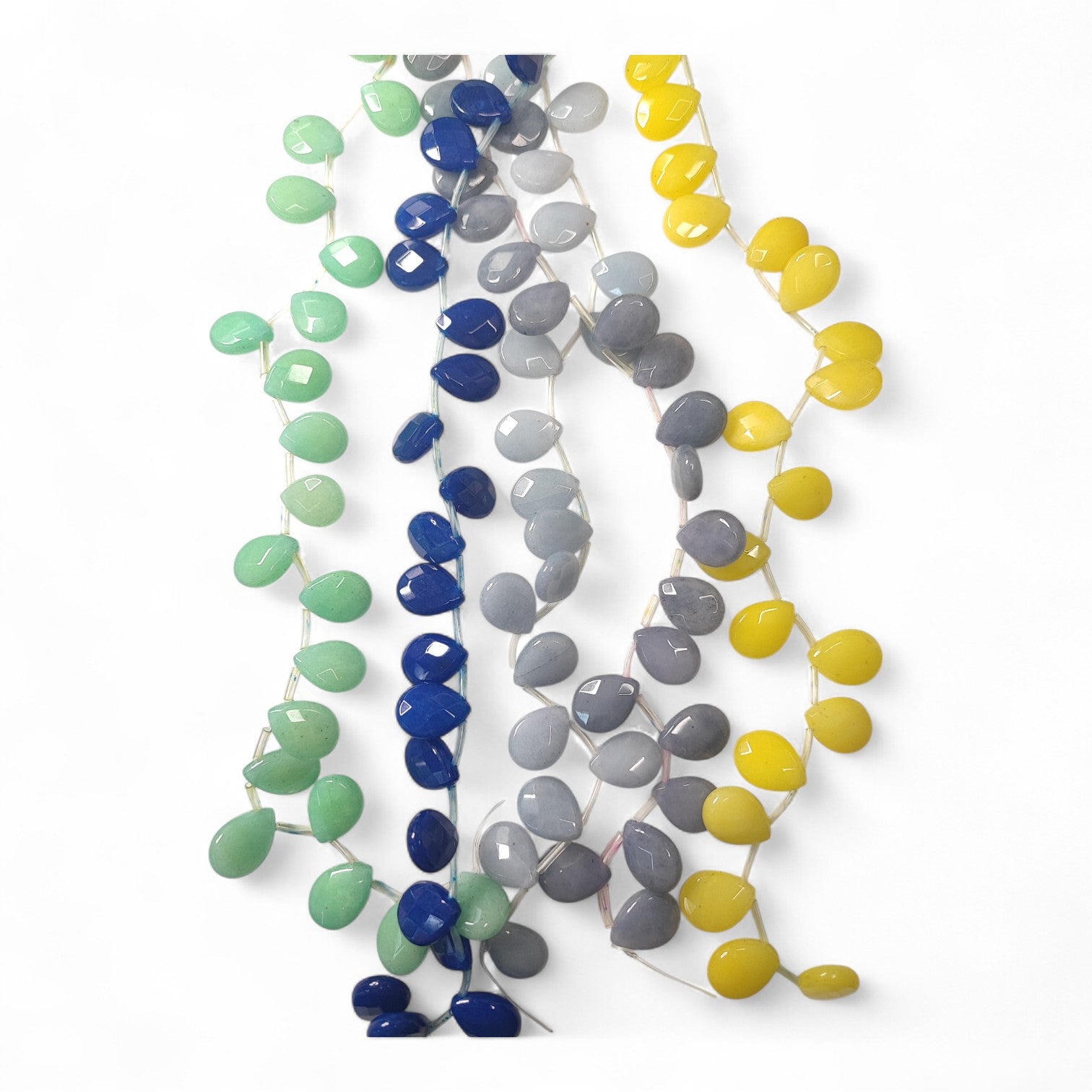 💎 Pendentifs Gouttes Facettées en Jade Blanc Teinté – 15x12 mm – Couleurs Mélangées