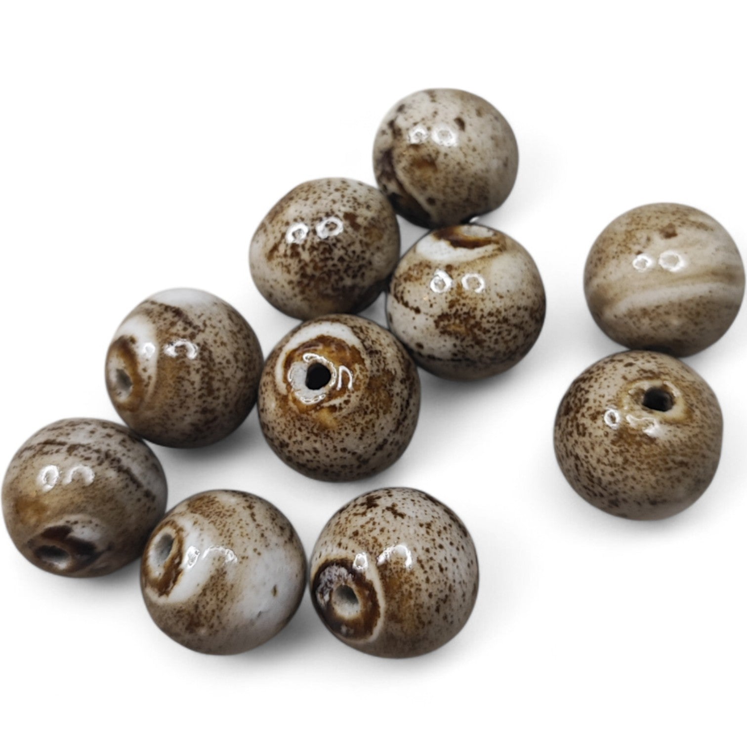 🌰 Perle Ronde en Céramique – 16 mm – Marron Naturel