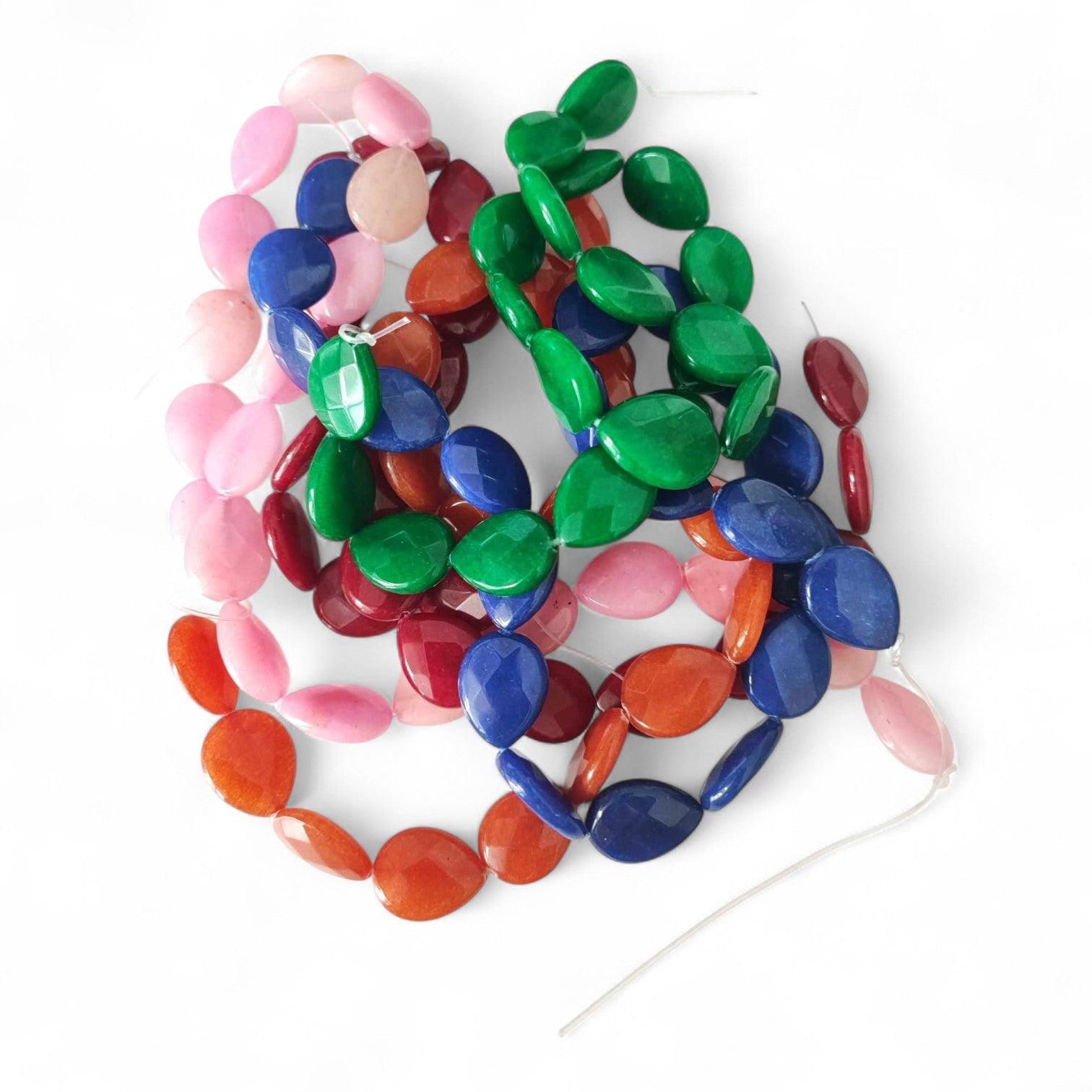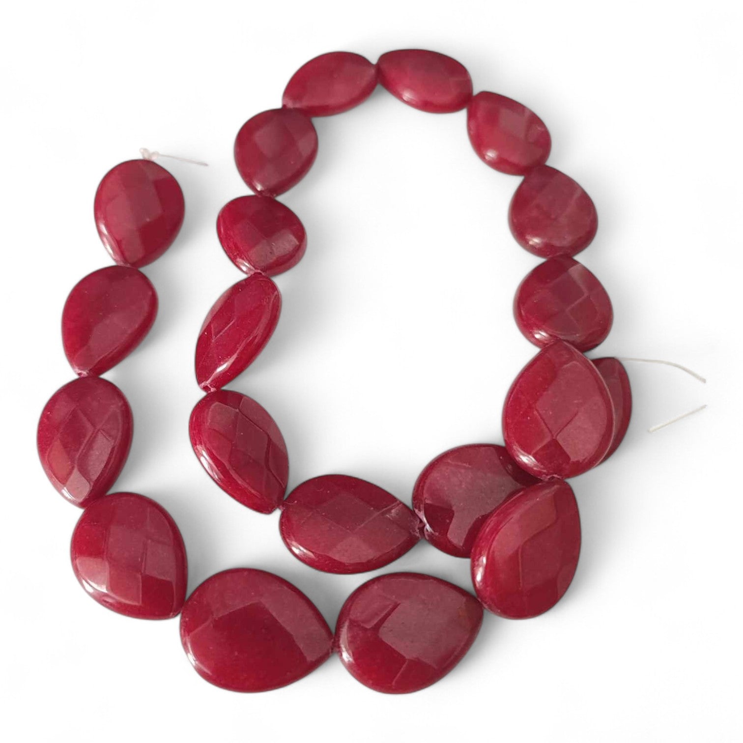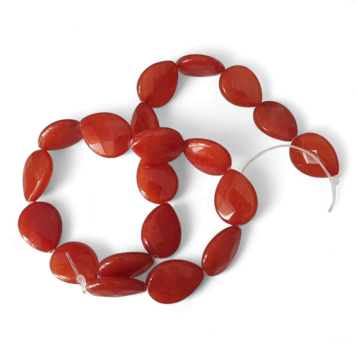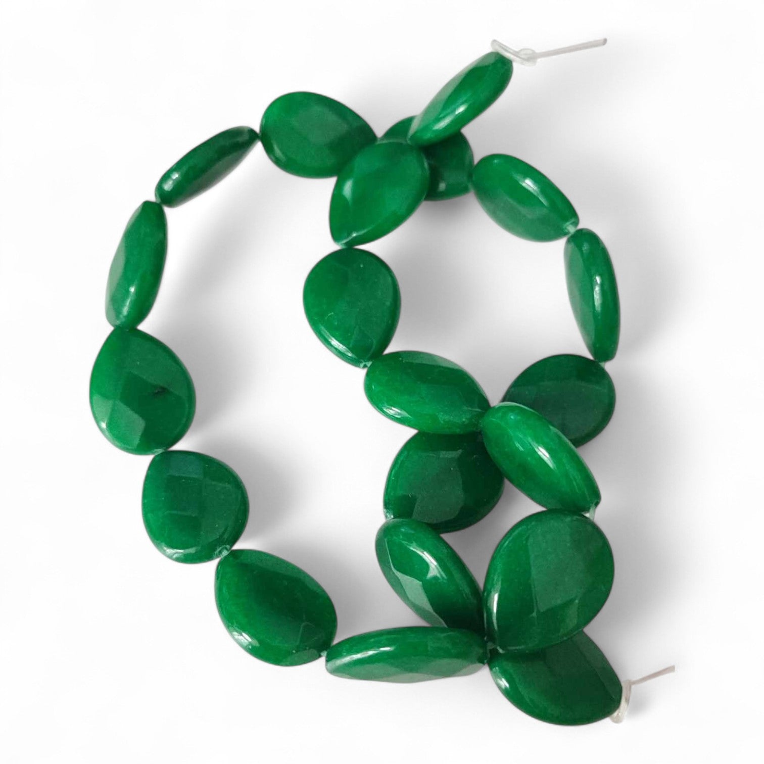 Ces perles en jade naturel teinté, taillées en goutte facettée, offrent un rendu lumineux et raffiné pour des bijoux modernes et féminins.