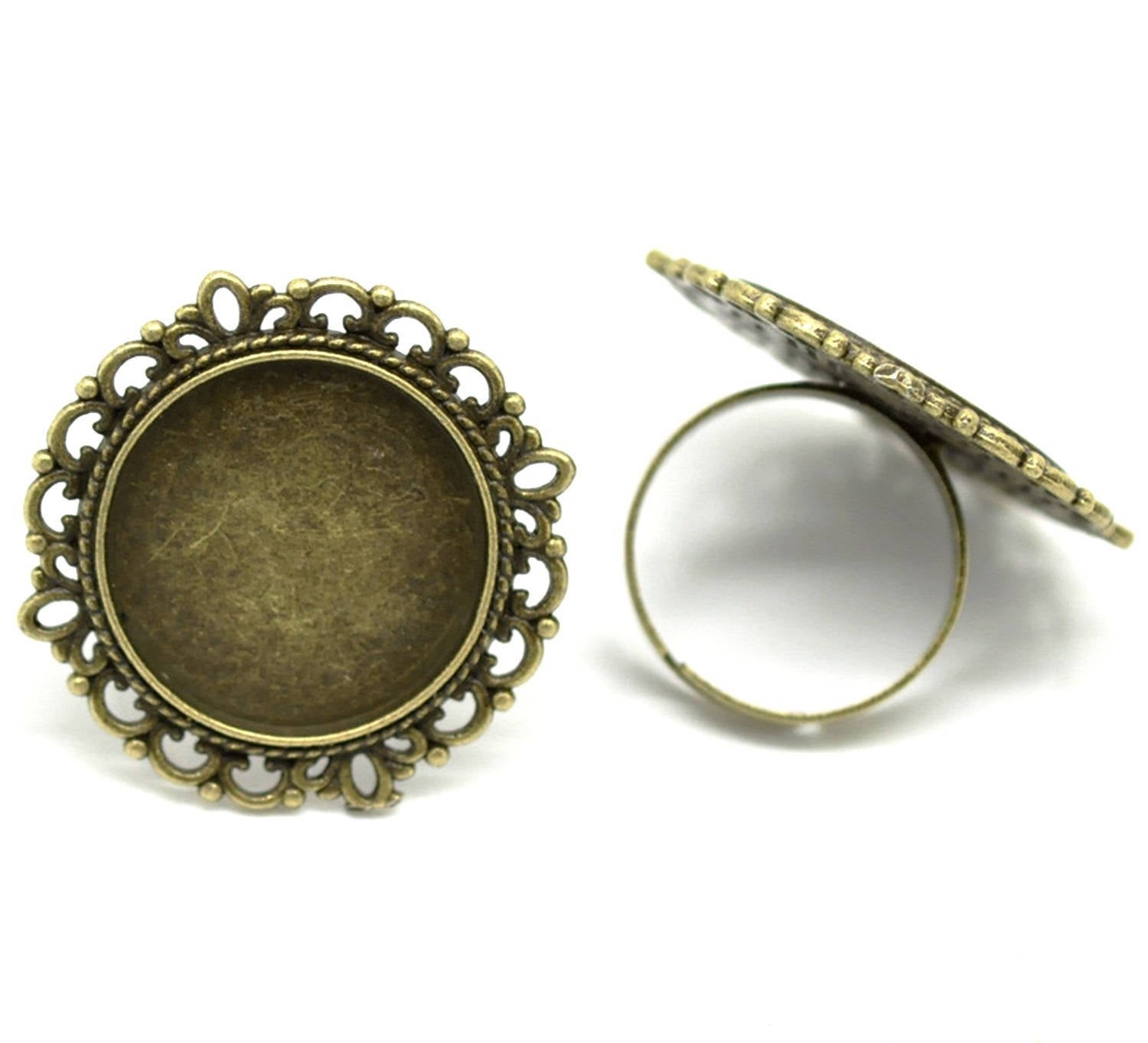 Ce support de bague en cuivre couleur bronze offre une base idéale pour accueillir vos cabochons de 20 mm et donner vie à des bijoux personnalisés et uniques.
