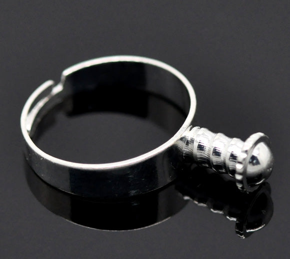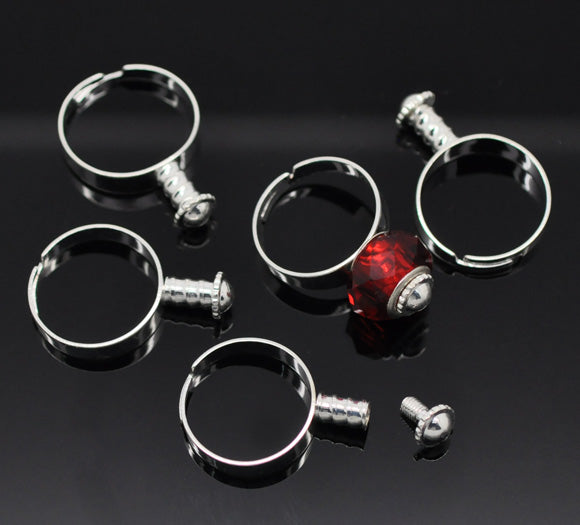 💍 Support de Bague à Vis – Pour perles à gros trou – Ajustable – Argenté clair
