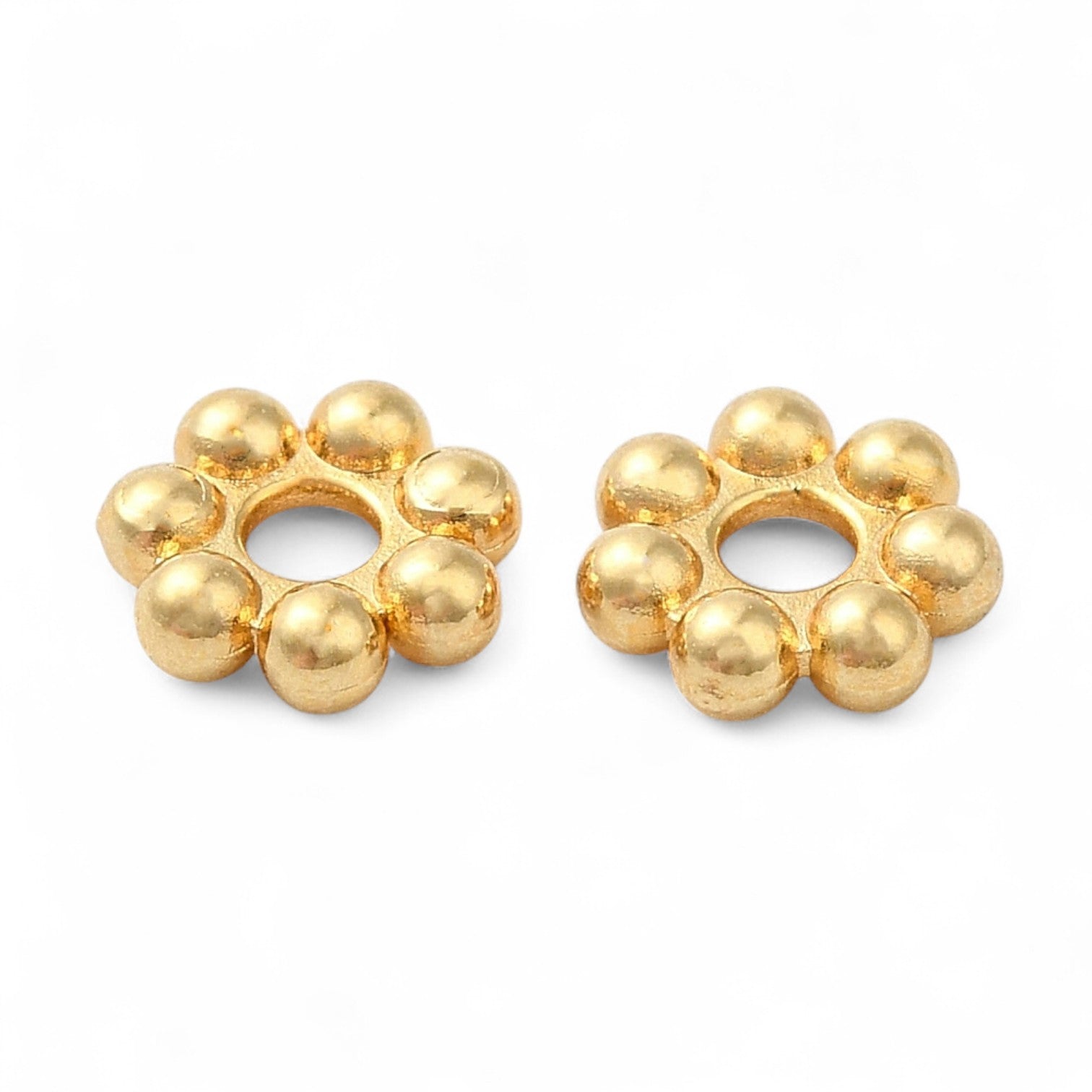 Apportez une touche délicate et raffinée à vos créations avec ces perles d’espacement en forme de fleur 🌼. Leur design granulé et discret en fait un élément idéal pour mettre en valeur vos perles principales et donner du relief à vos bijoux.