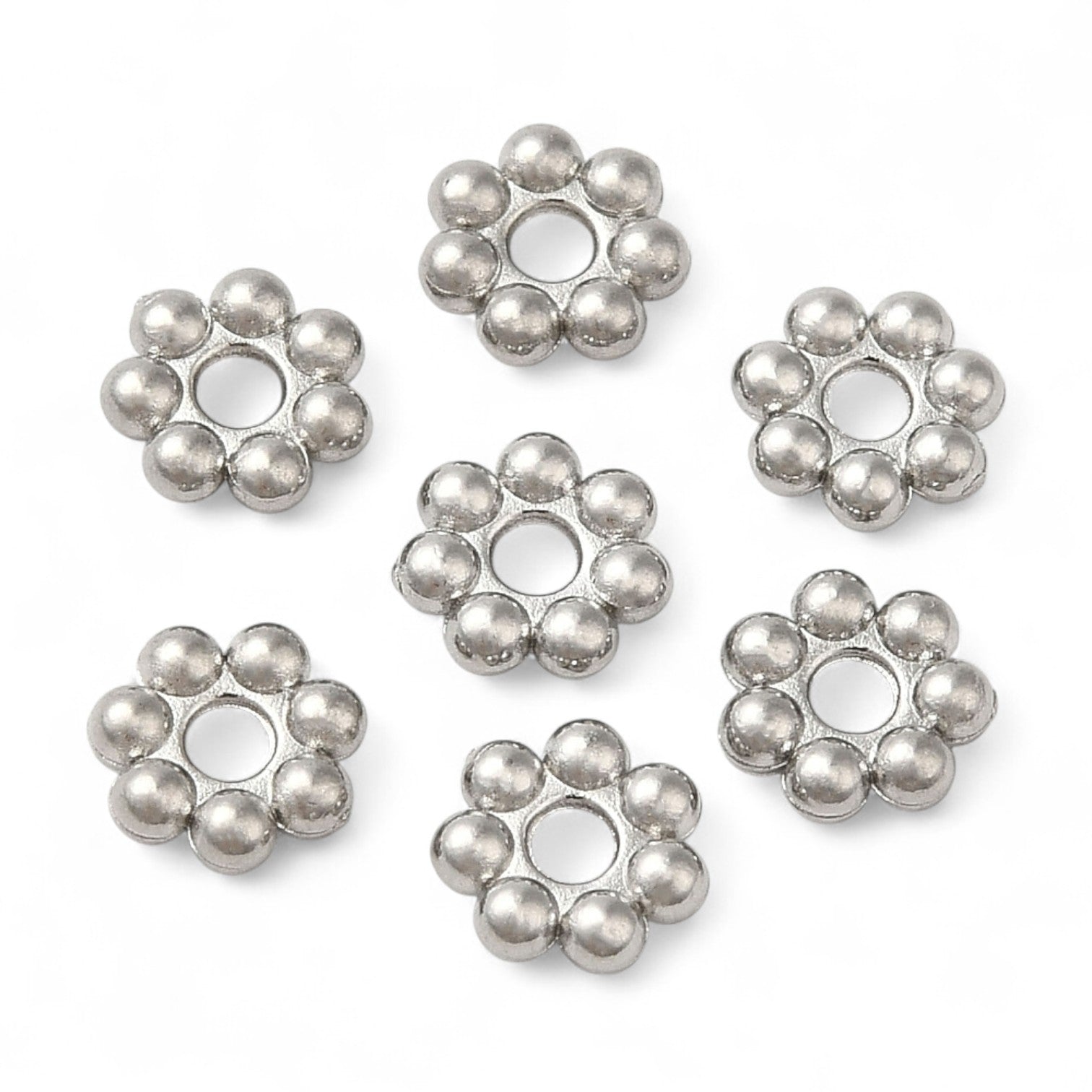 x10 Perles d’Espacement Fleur en Acier Inoxydable 304 – Couleur Acier ou Plaqué Or 18K