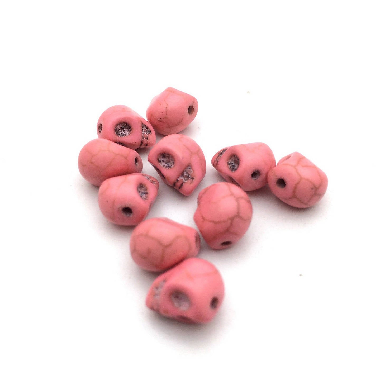 x10 Perles Crâne en Howlite synthétique – Rose – 10 mm
