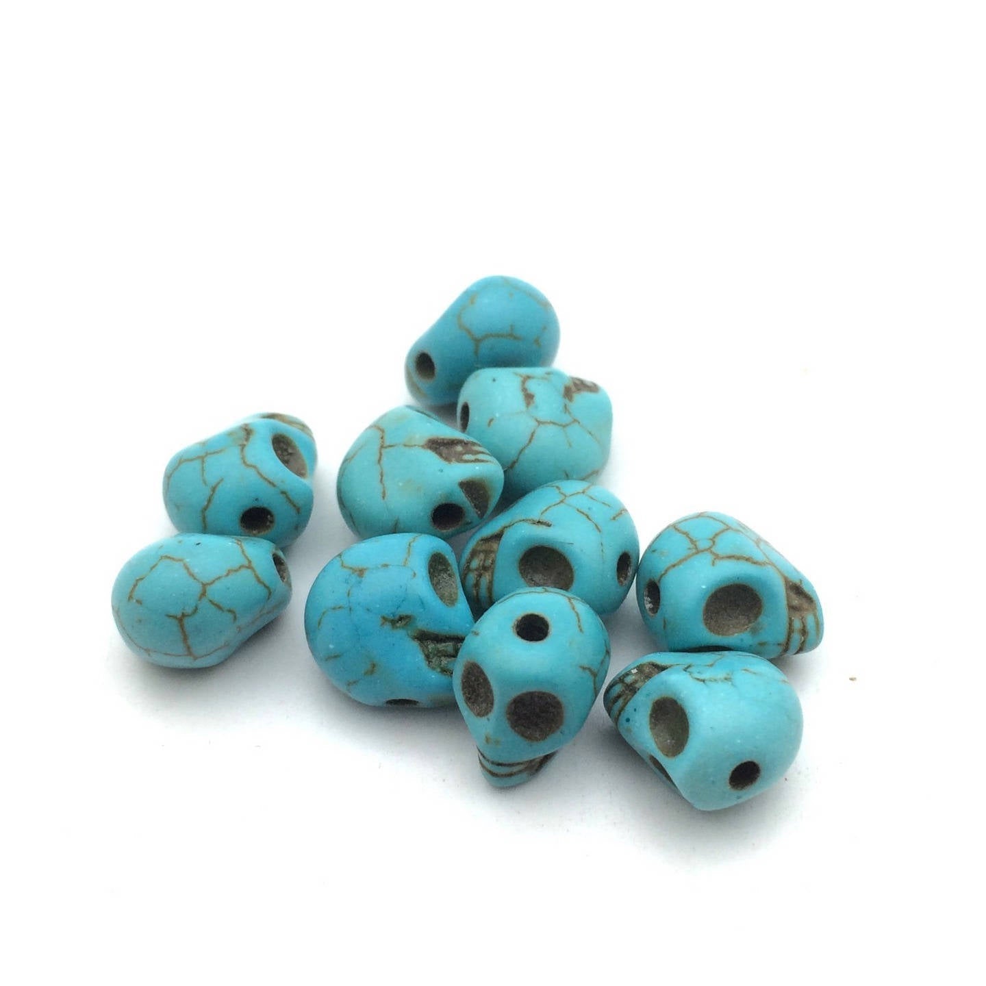 x10 Perles Crâne en Howlite Turquoise synthétique – 10 mm