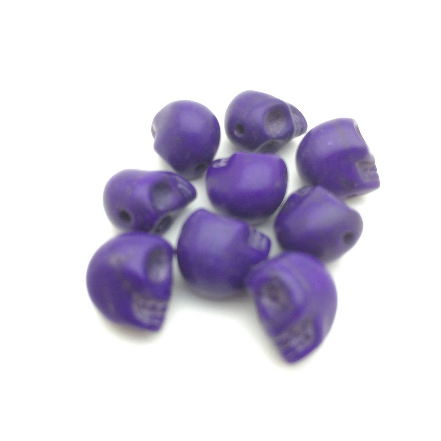 x10 Perles Crâne en Howlite Synthétique – Violet – 10 mm