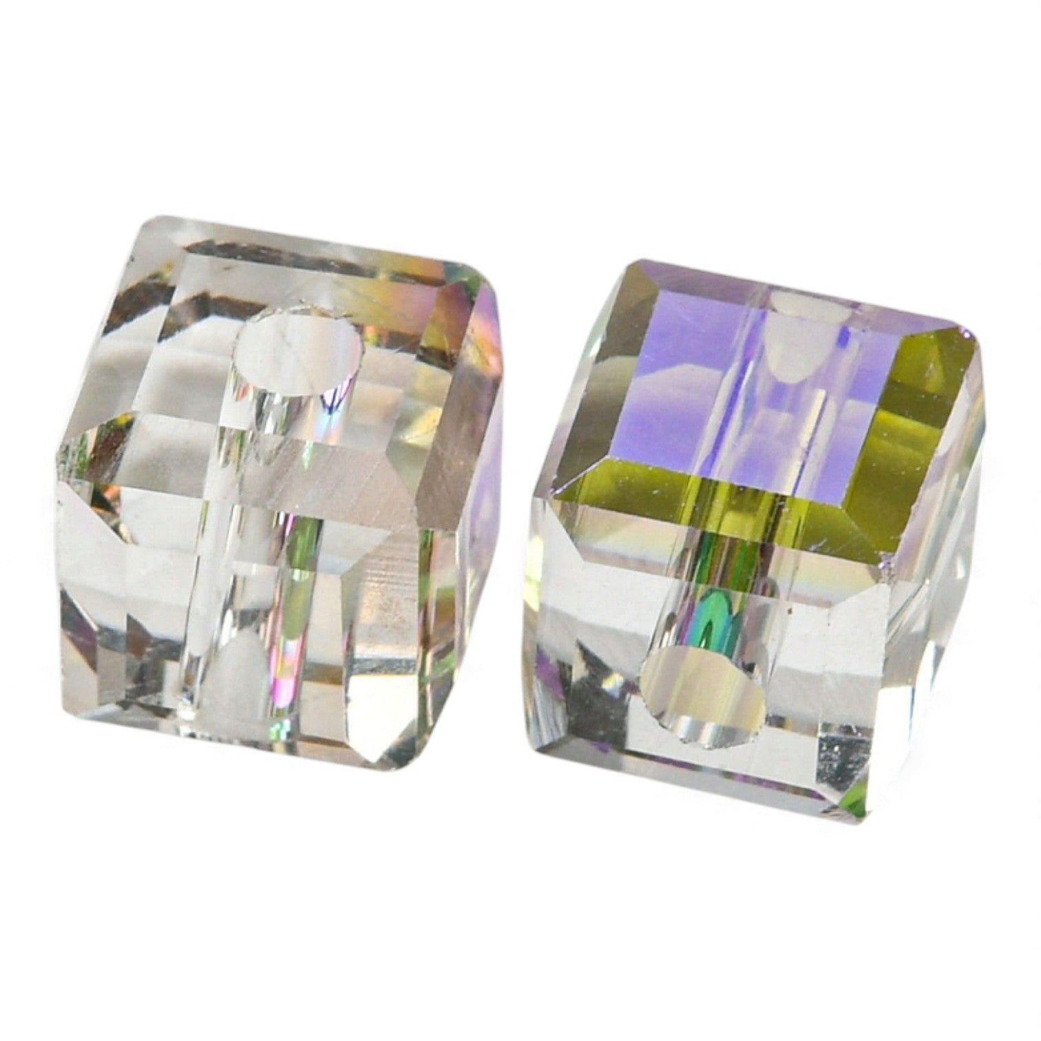 Ces perles cubiques en verre électroplaqué allient transparence et éclat subtil. Leurs reflets violets sur fond gris offrent un effet lumineux et raffiné, idéal pour donner du caractère à vos créations.