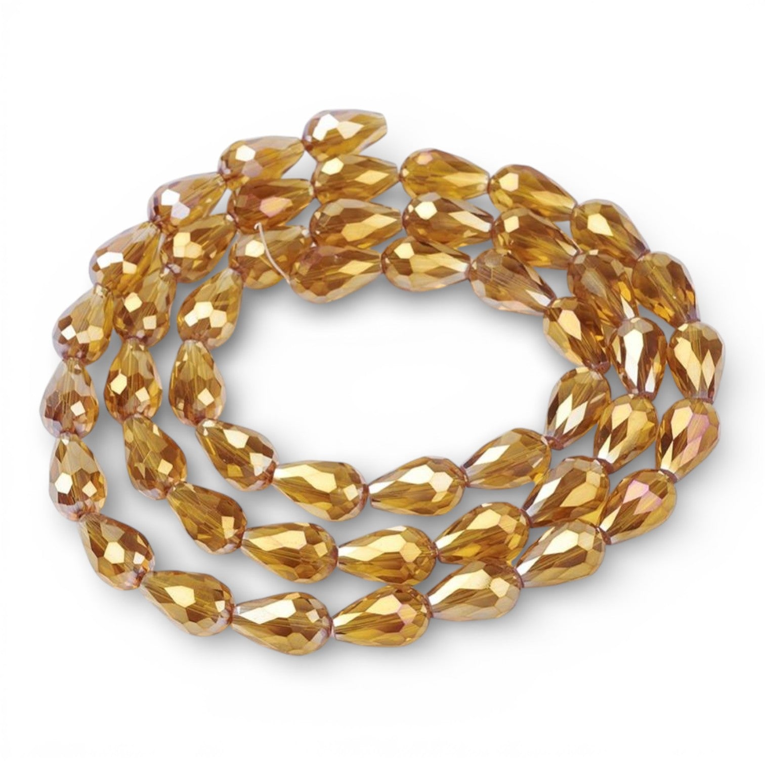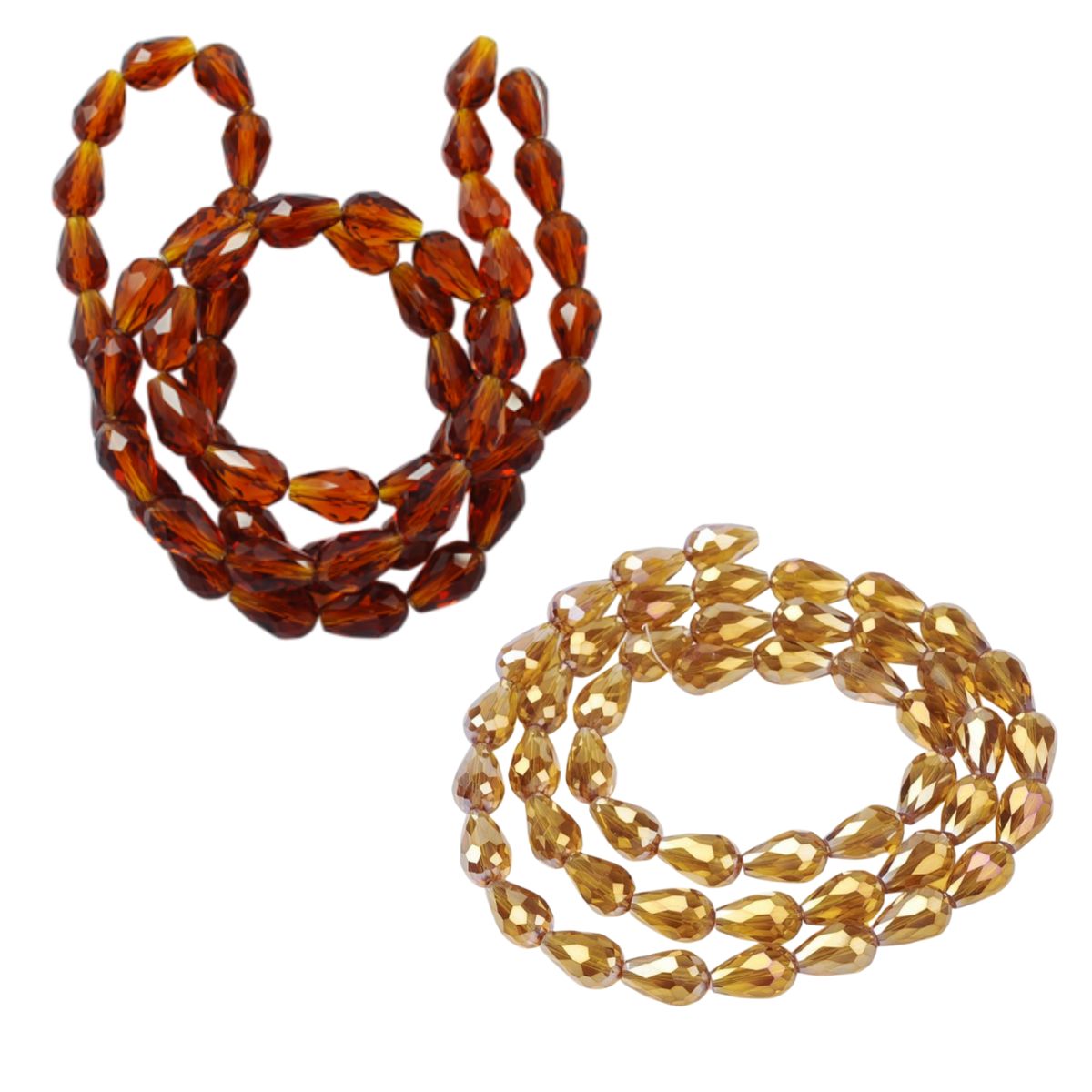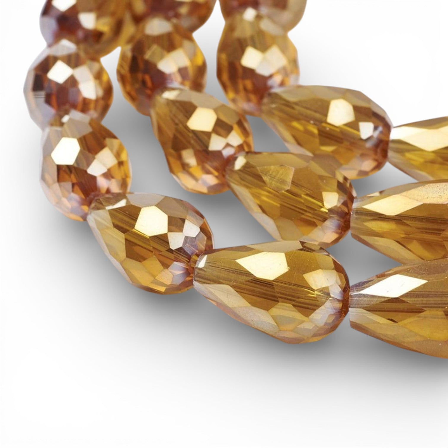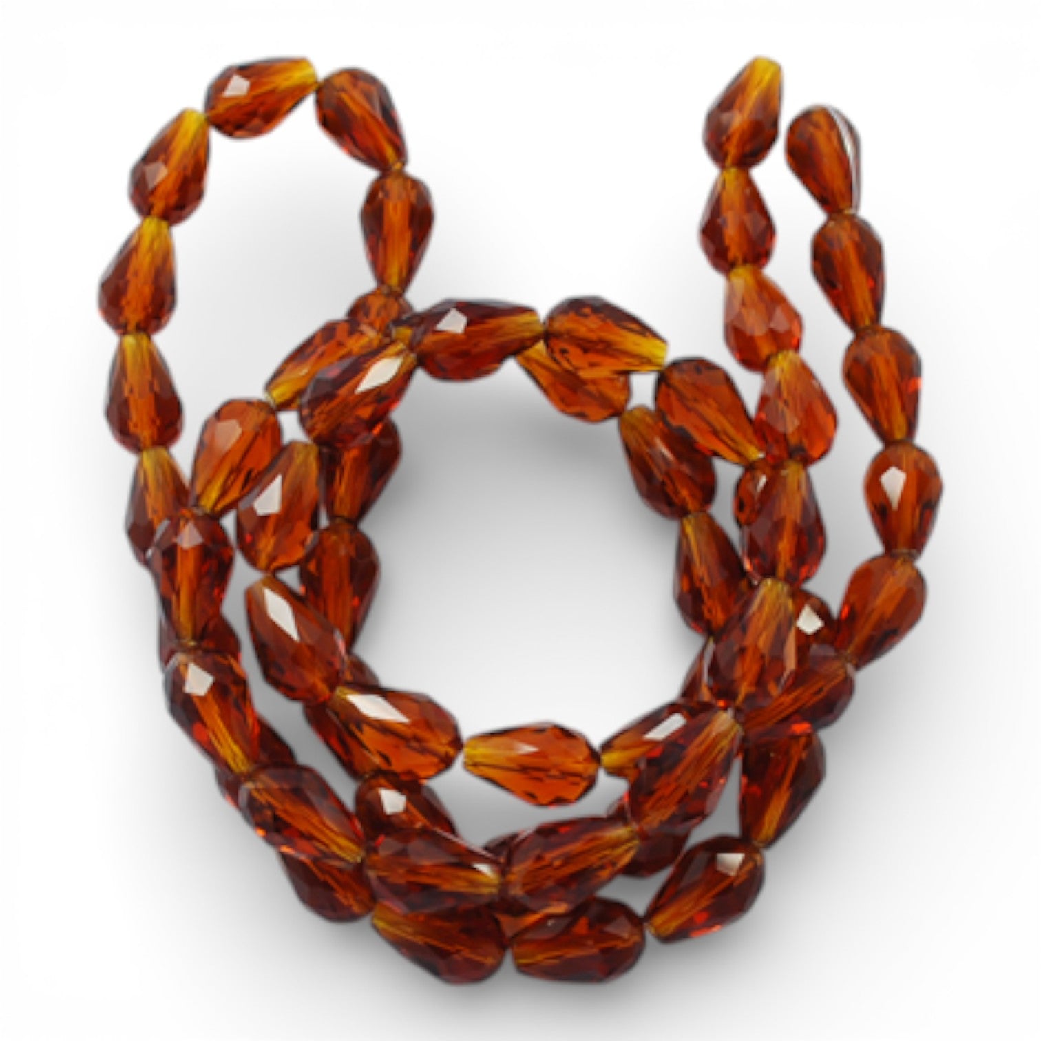 Lot de 10 perles en verre, forme goutte à facettes, finitions ambrées AB ou marron, idéales pour bijoux élégants et lumineux.