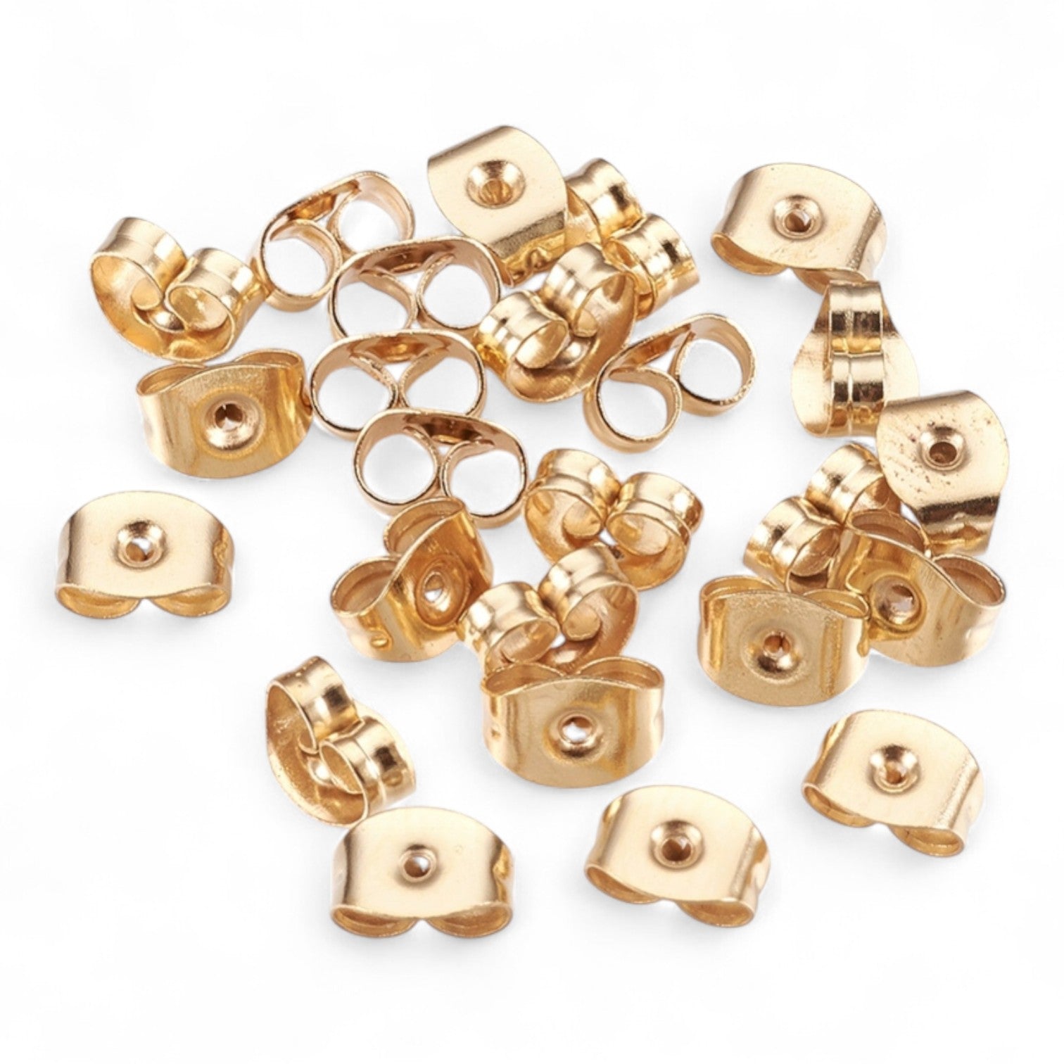 Apportez une finition professionnelle et élégante à vos créations de boucles d’oreilles avec ces poussoirs en acier inoxydable 304, rehaussés d’un plaqué or 24 carats. Solides, résistants et confortables, ils assurent un maintien parfait des boucles à tige tout en ajoutant une touche raffinée à vos bijoux.