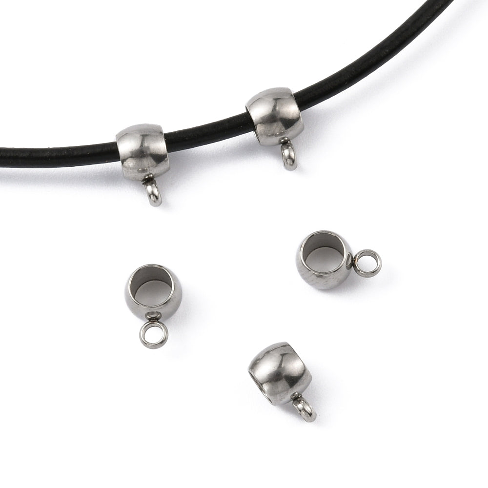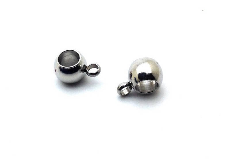 x2 bélières perle avec perle d'attache, en acier inoxydable 304, 5x9x6mm