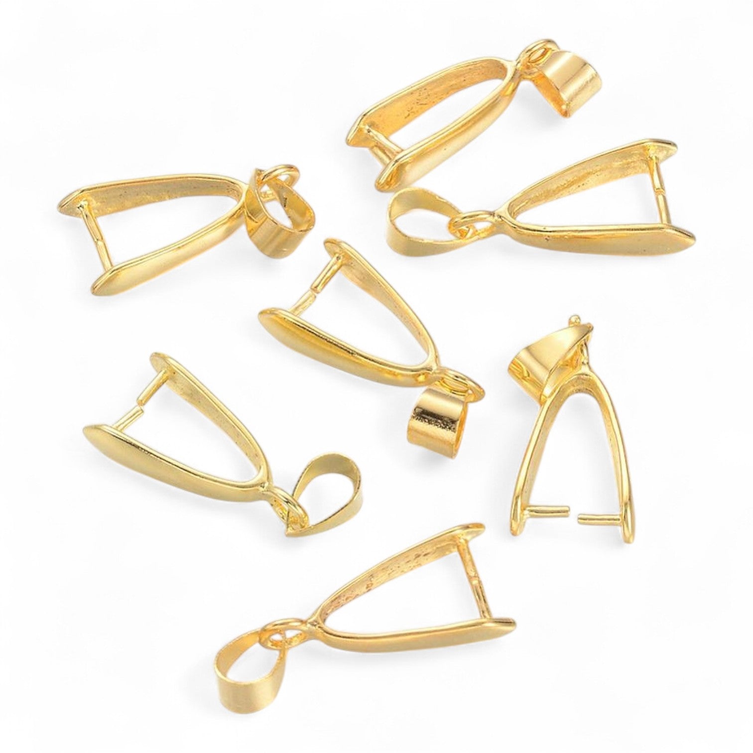 Apporte une finition professionnelle et élégante à tes pendentifs avec ces bélières à pincer en laiton doré. Pratiques et résistantes, elles permettent de fixer facilement une breloque, une pierre percée ou un pendentif à une chaîne, tout en garantissant un rendu raffiné.