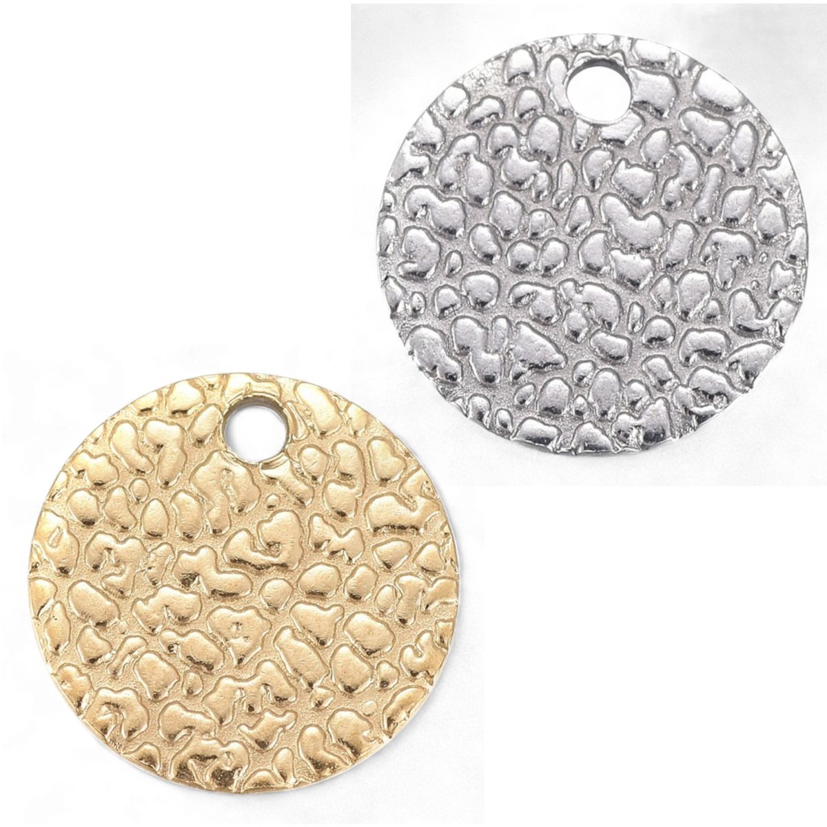 x2 Breloques Rondes Texturées en Acier Inoxydable 304 – 10 mm