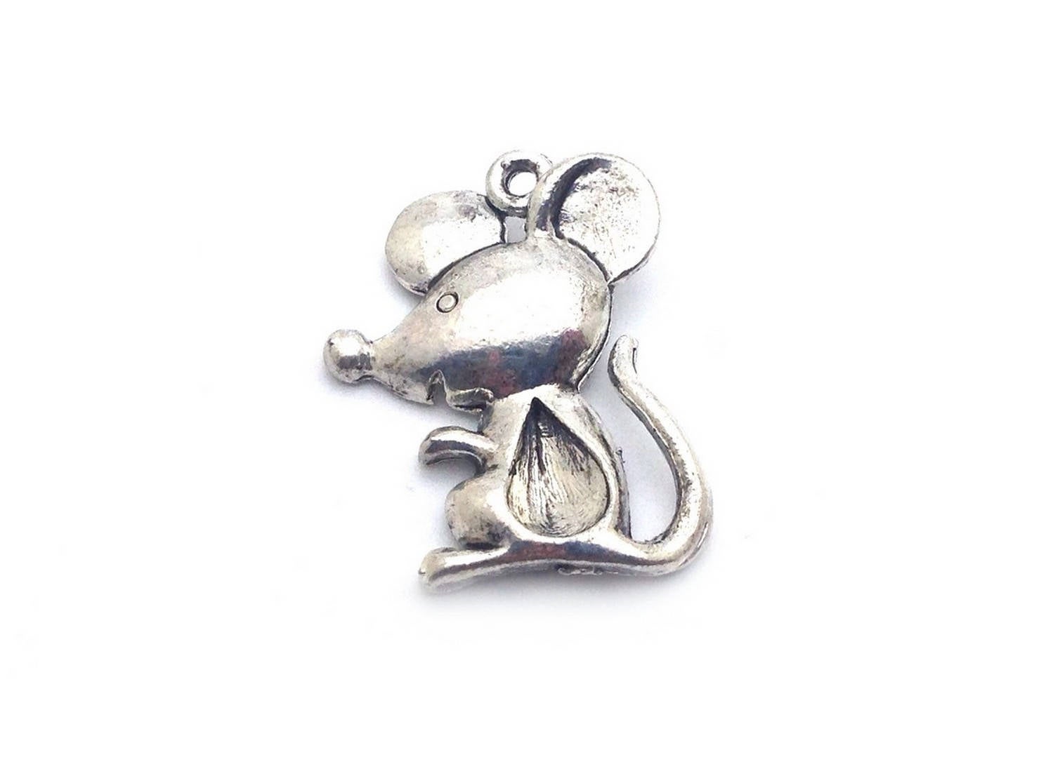 x2 Breloques Souris en métal argenté foncé – 19x24 mm