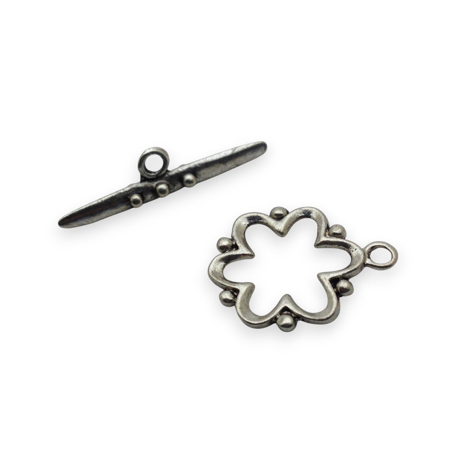 🌸 x2 Fermoirs T Toggle Rosace – Métal Argenté – 19/24 mm