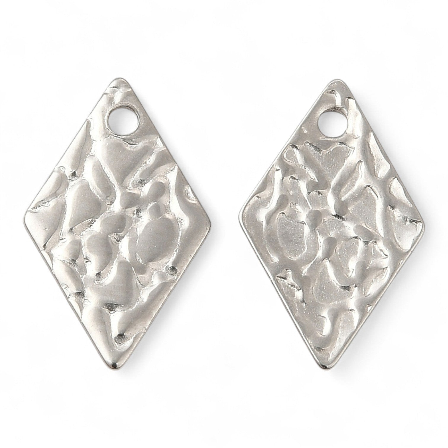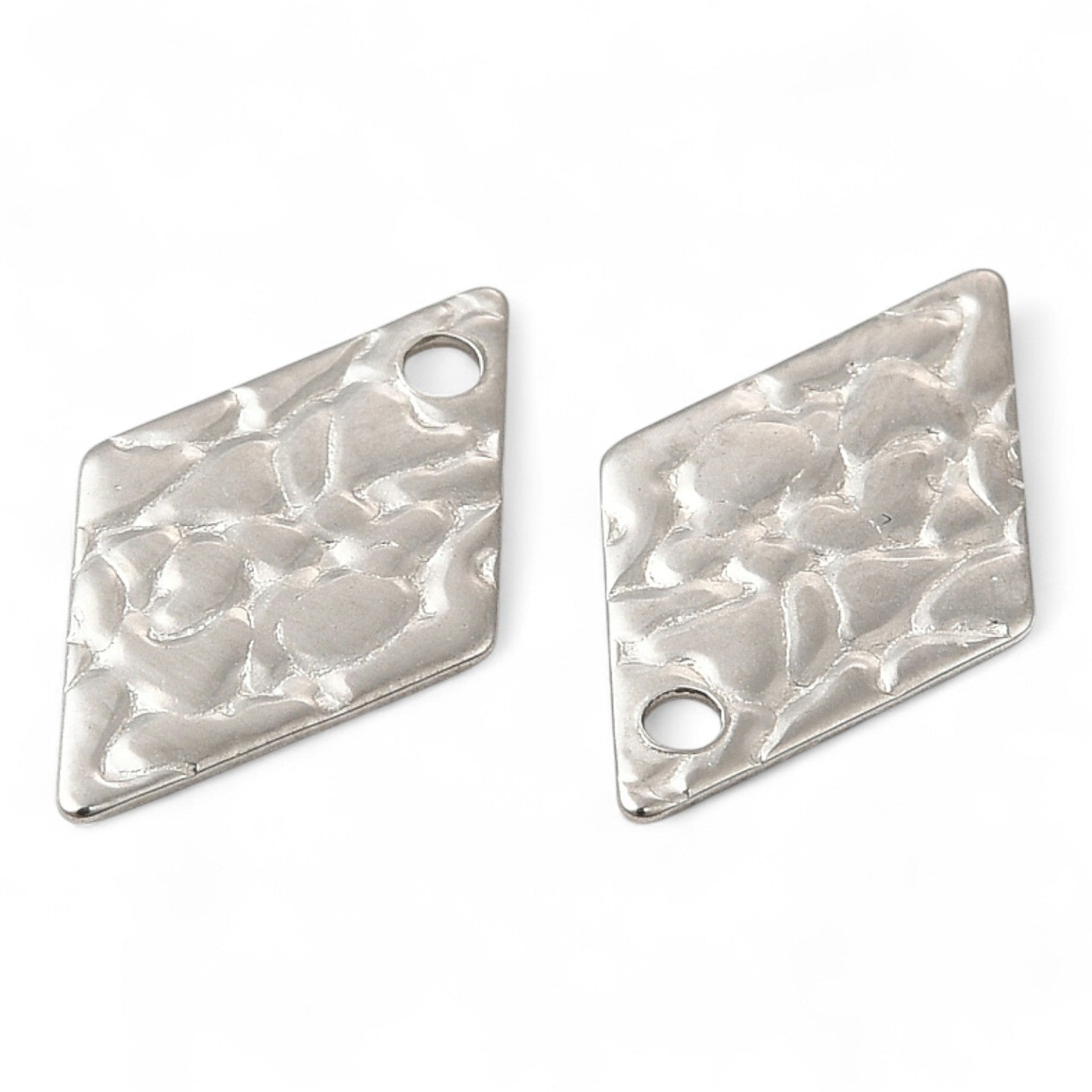 X2 Pendentifs Losange Texturés en Acier Inoxydable 304 – 16 mm