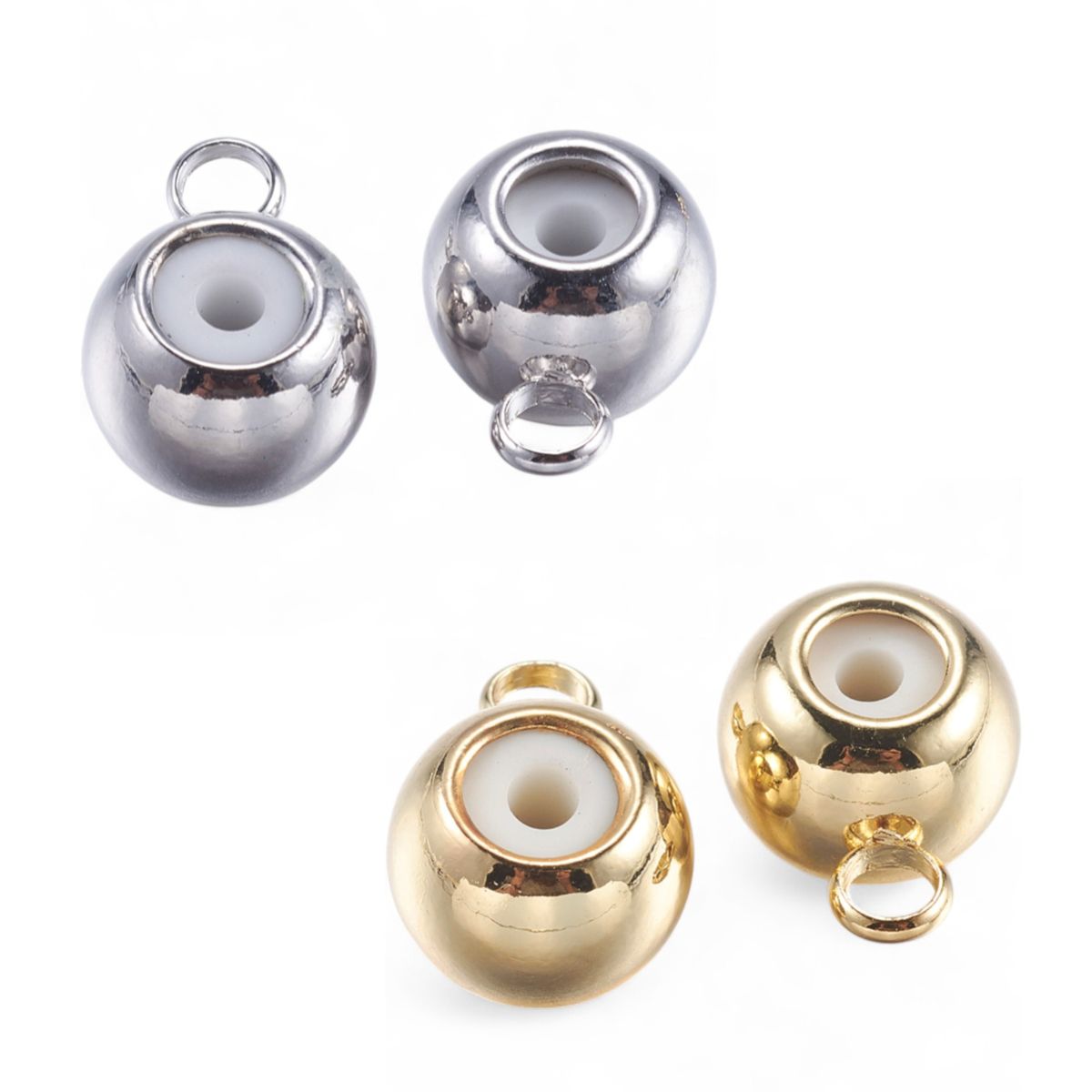 x2 Perles bélières stoppeuses en laiton – avec anneau et caoutchouc intégré