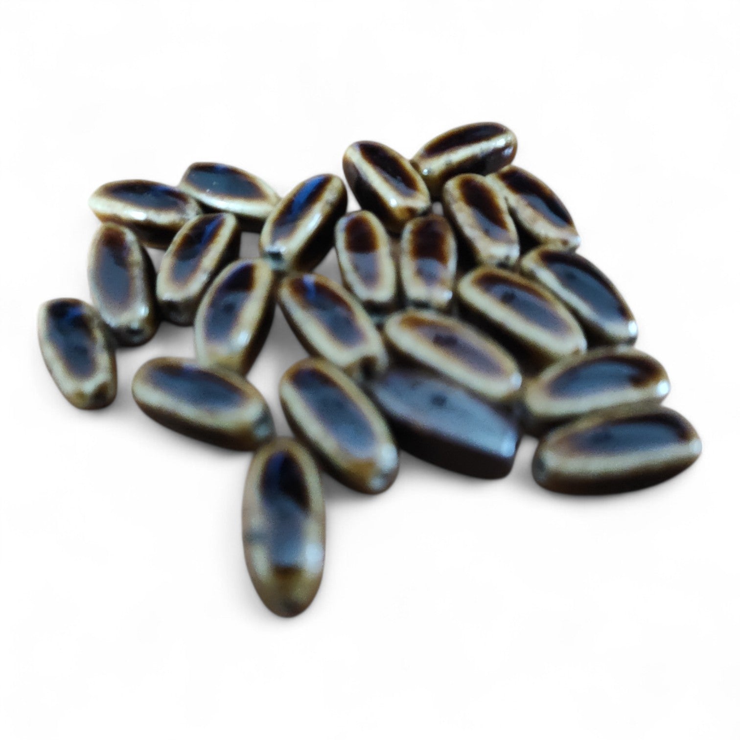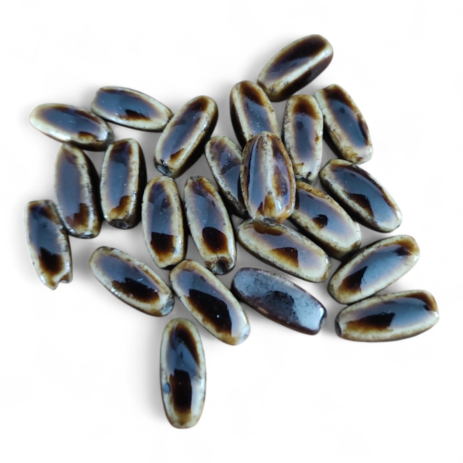 🌰 Perles Céramique Marron – Forme Allongée – 15x7 mm