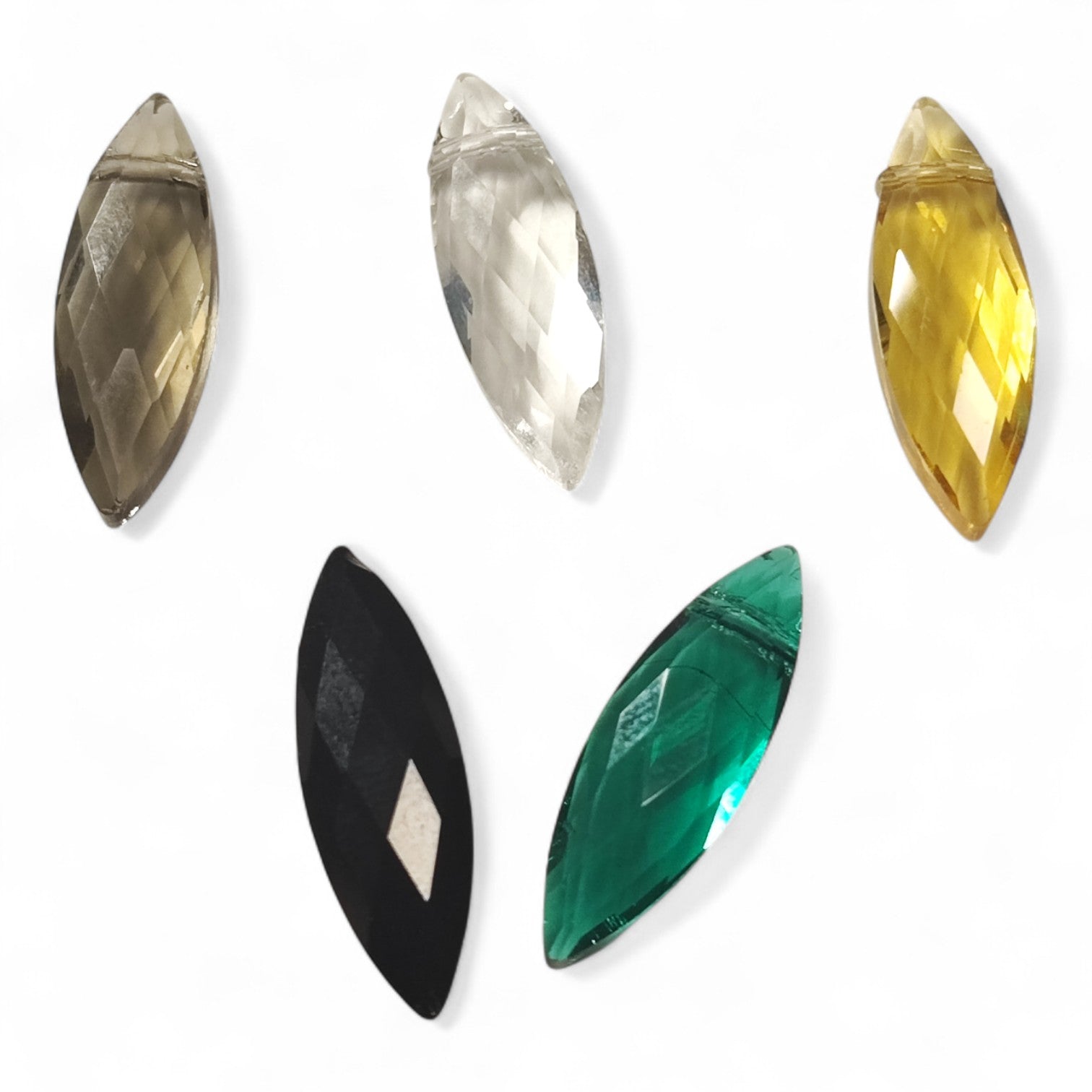 Perles en verre à facettes en forme d’œil de cheval. Idéales pour des pendentifs modernes et stylés.