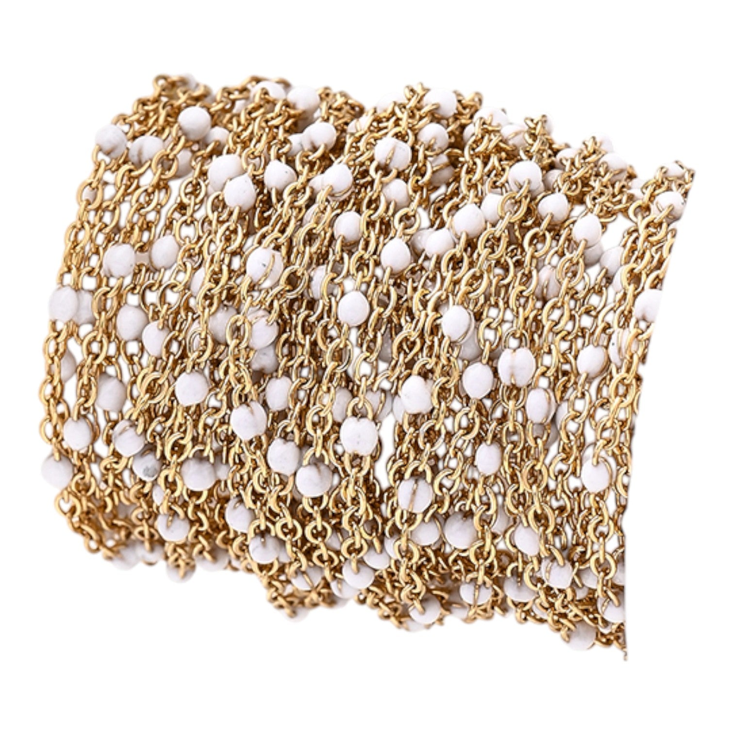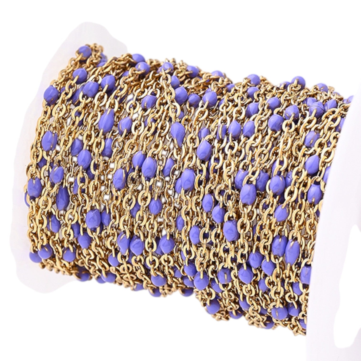 Une sublime chaîne délicatement perlée, parfaite pour ajouter une touche de finesse et de couleur à vos créations. Ses gouttes émaillées apportent une élégance subtile, idéale pour des bijoux modernes et lumineux.