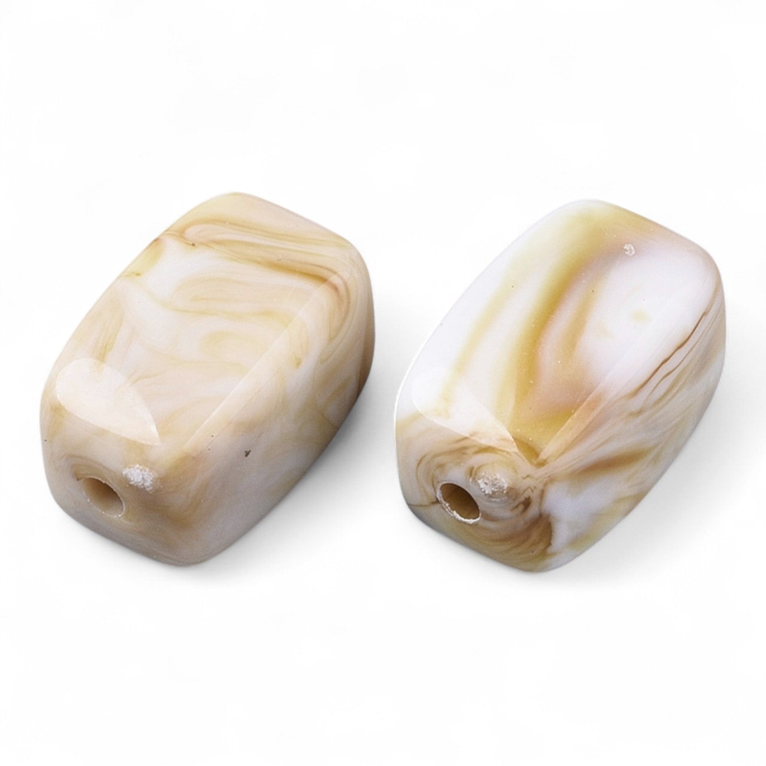 x20 Perles Acryliques Rectangulaires – Effet Pierre Précieuse – Blanc/Beige marbré – 13 mm
