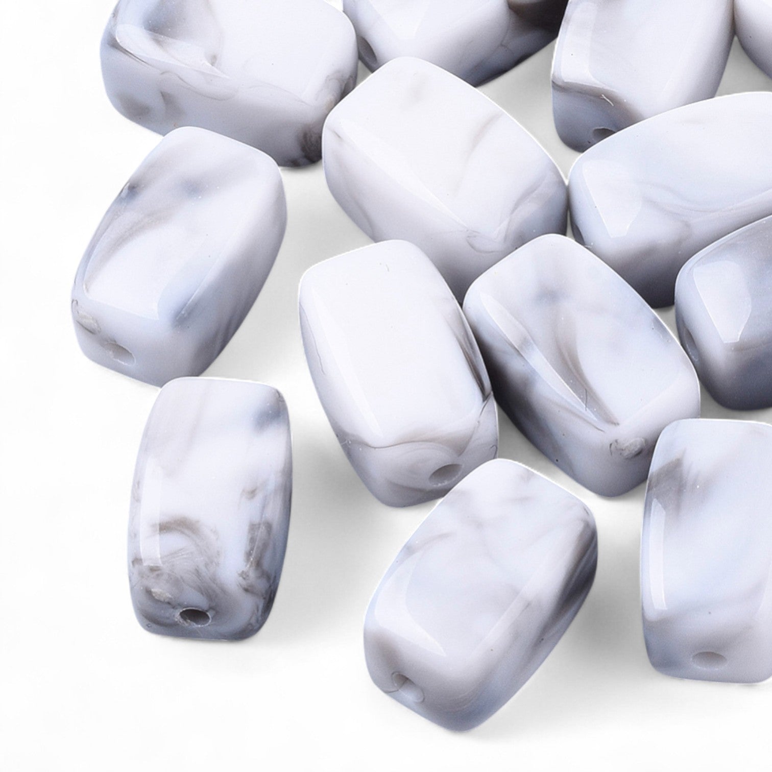 x20 Perles Acryliques Rectangulaires – Effet Pierre Précieuse Gris Marbré – 13 mm