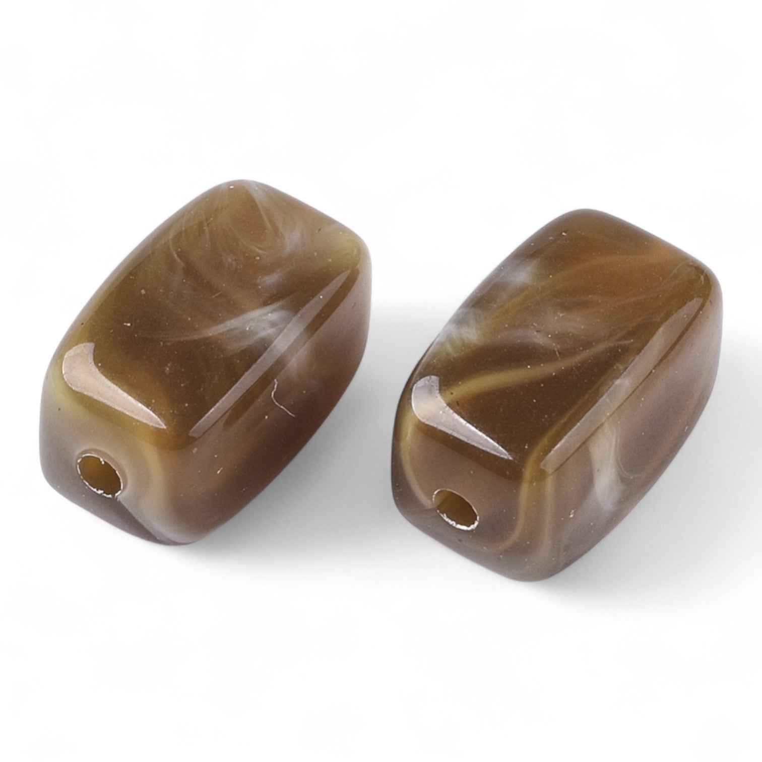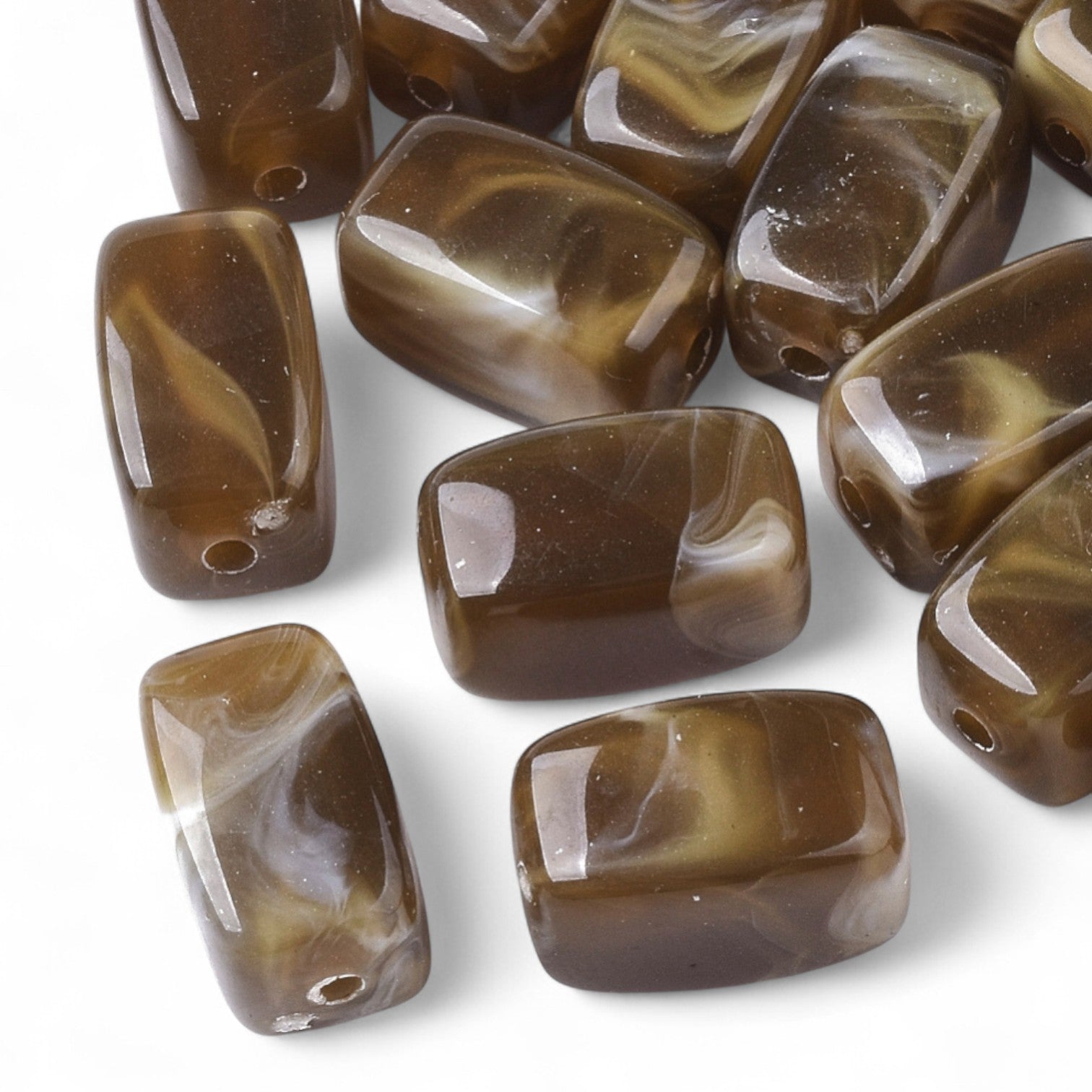 x20 Perles Acryliques Rectangulaires – Effet Pierre Précieuse – Marron marbré – 13 mm