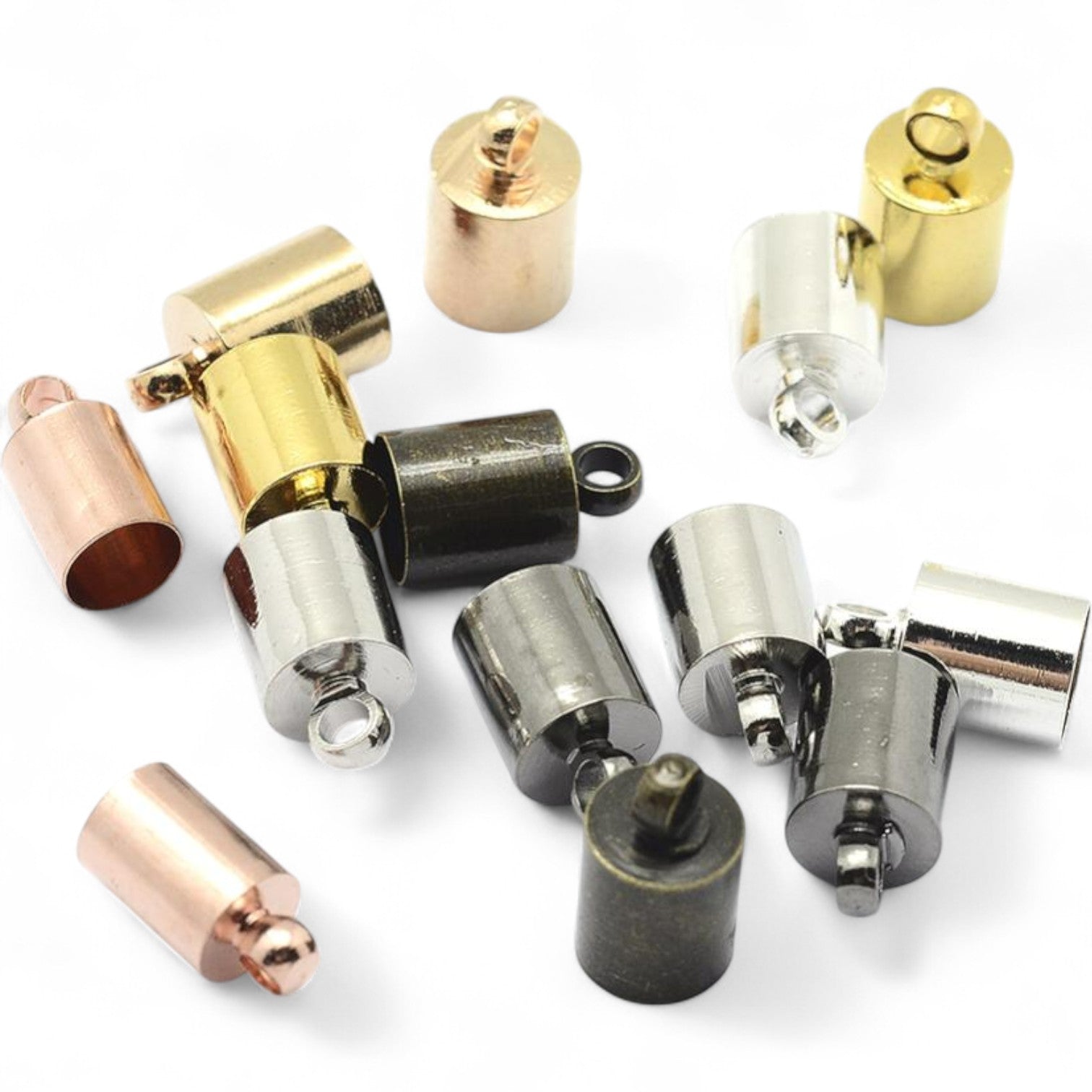 Ces embouts cylindres métalliques avec anneau apportent une finition élégante et pratique à vos créations. Disponibles en plusieurs coloris, ils s’adaptent parfaitement à vos cordons de 4 à 4,5 mm.
