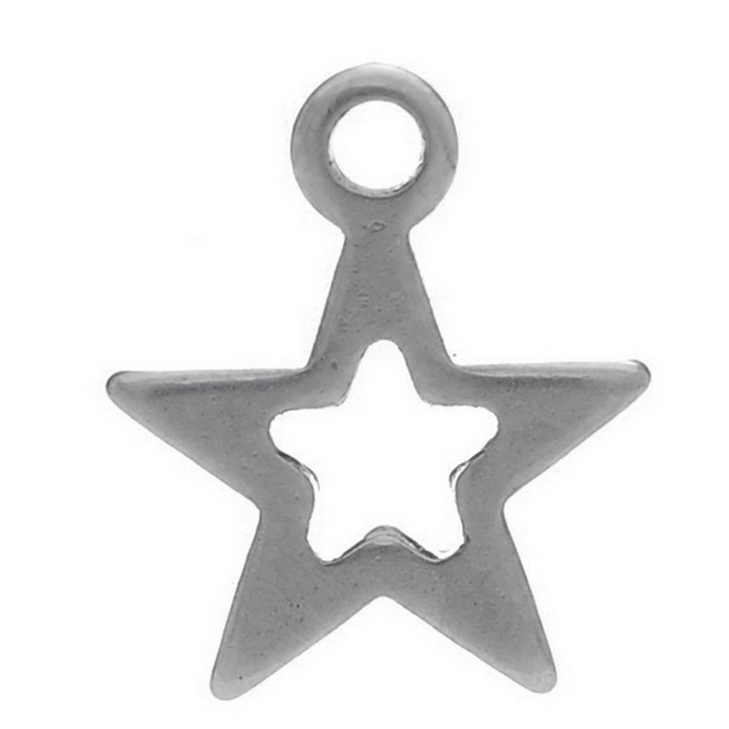 ⭐ 5 Pendentifs étoile creuse – Acier inoxydable 304 – 10x9mm – Argent mat