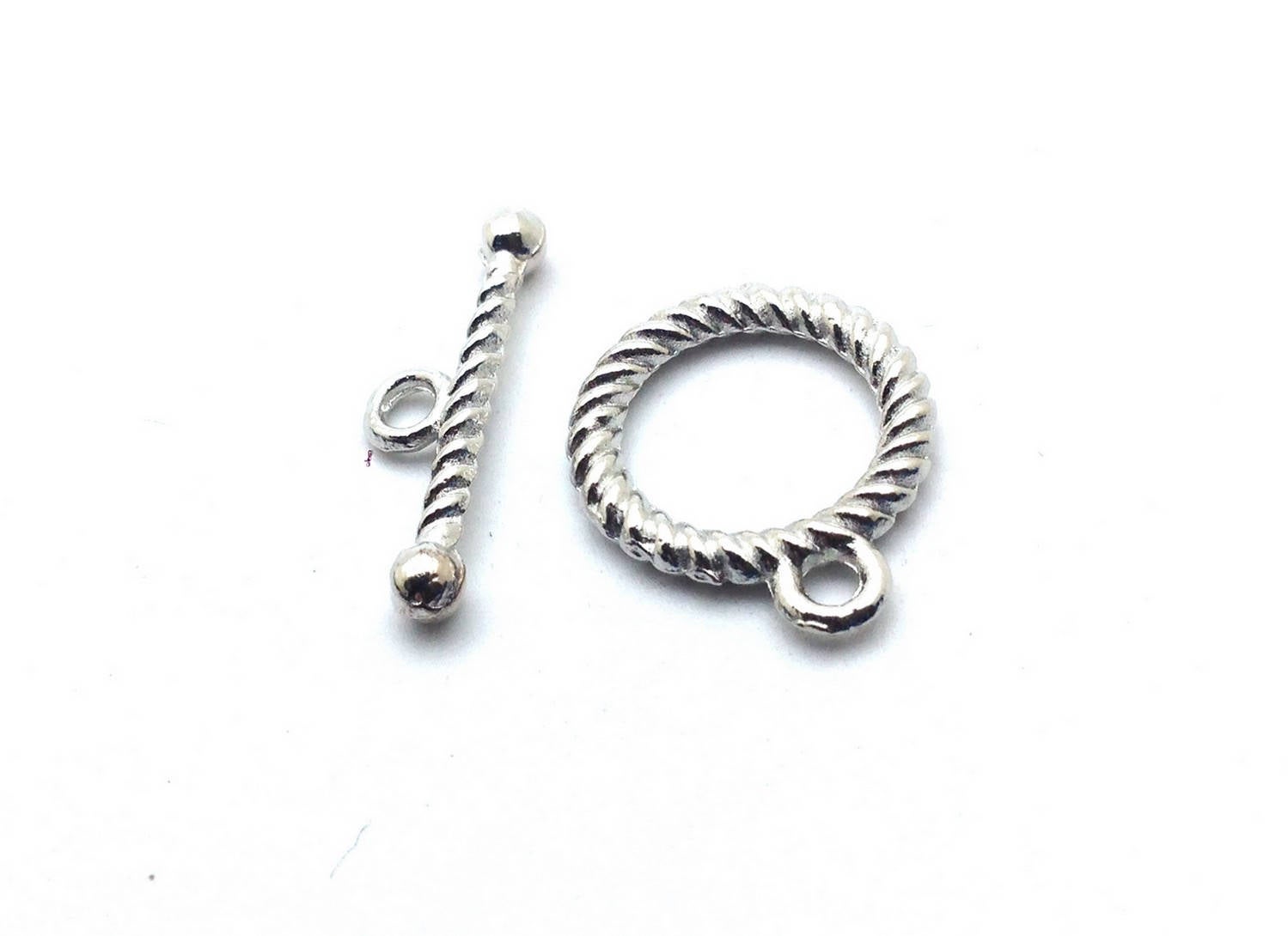 x5 Fermoirs T Toggle Spirale – Métal Argenté – 14/18,5 mm