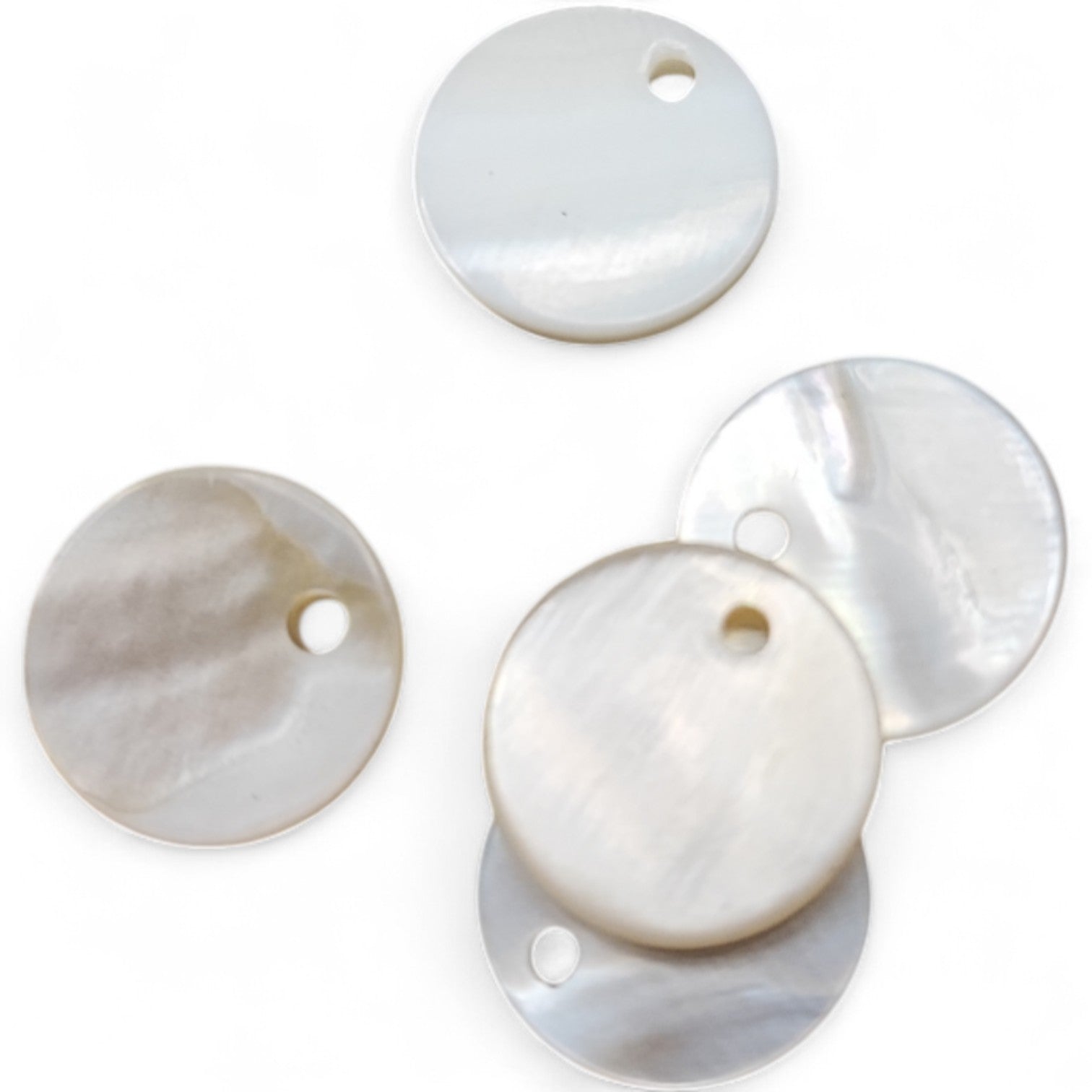 x5 Pampilles Rondes en Nacre Blanc/Ivoire – 12 mm
